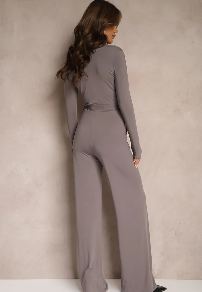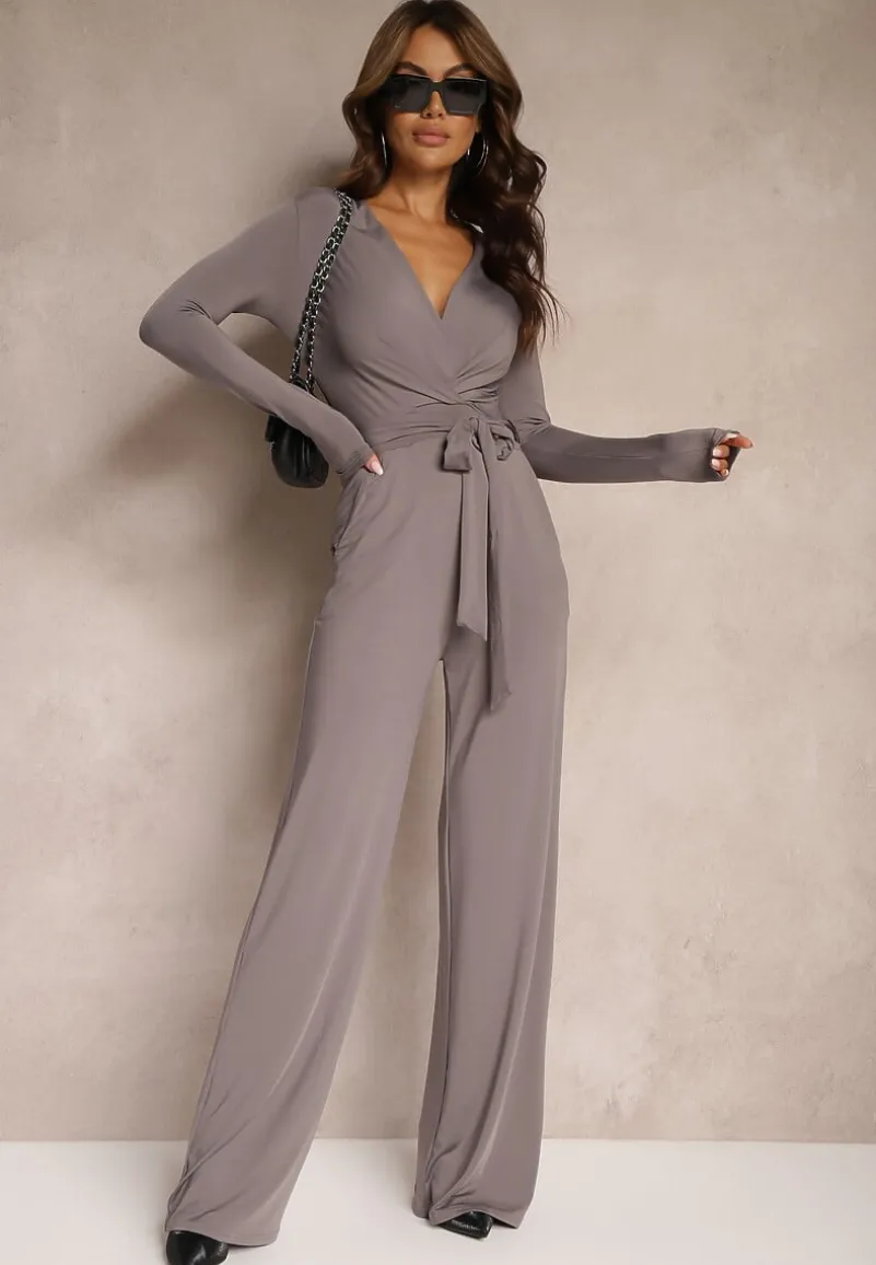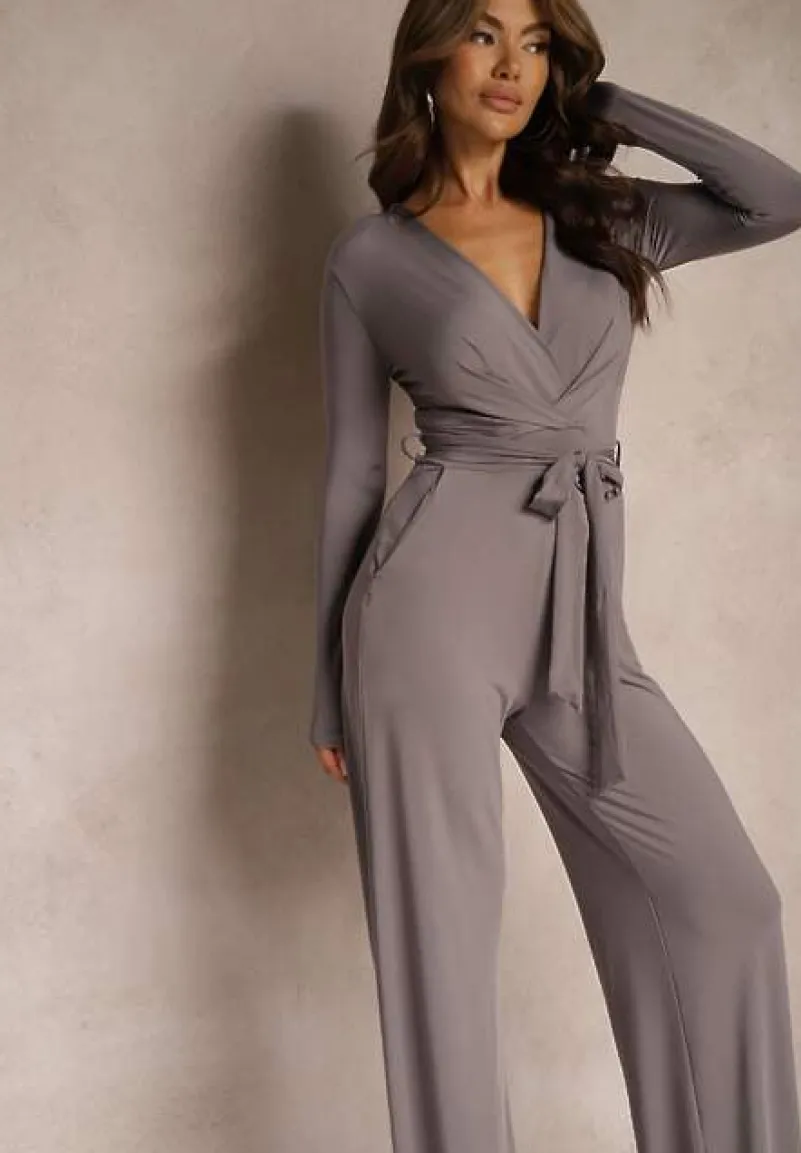Szary Kombinezon z Kopertowym Dekoltem Ivemie