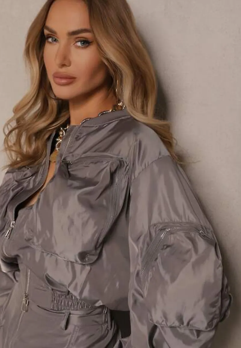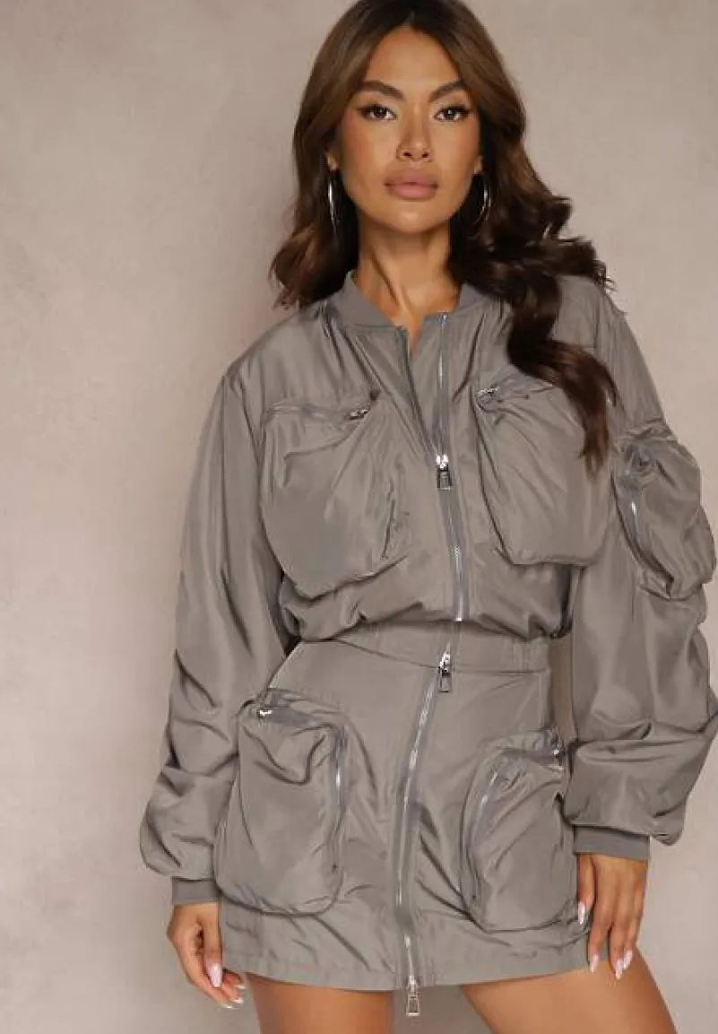 Komplet bomberka z marszczonymi rękawami i spódnica z efektownymi kieszeniami to strzał w dziesiątkę dla fanek miejskiego stylu. Swobodny krój, dynamiczne marszczenia sprawią, że będziesz czuć się stylowo i komfortowo niezależnie od sezonu. Ten elegancki, ale i nieco sportowy zestaw, dopełniony unikatowymi zdobieniami, przyciąga wzrok i pozwala na tworzenie wielowymiarowych stylizacji. Wybierz go na codzienne wyjście w połączeniu z sneakersami, czy też załóż do botków i eleganckiej torebki na wieczorną kolację.