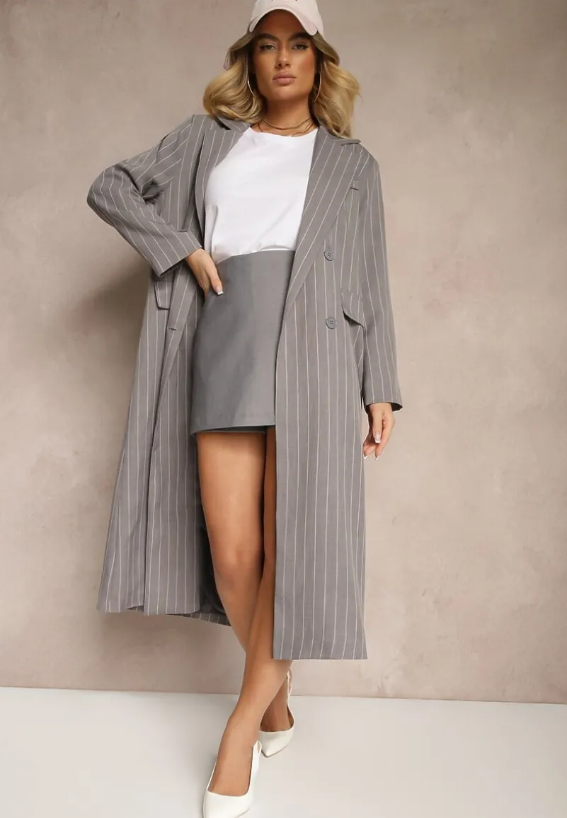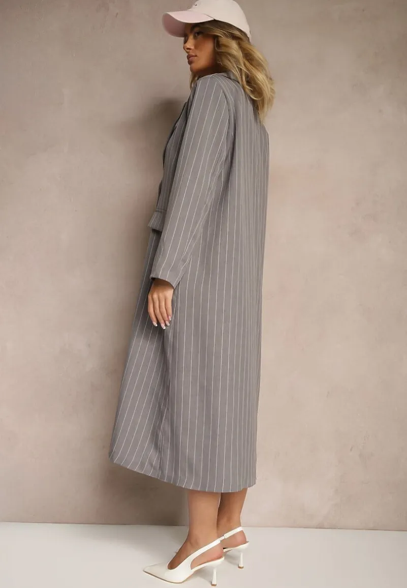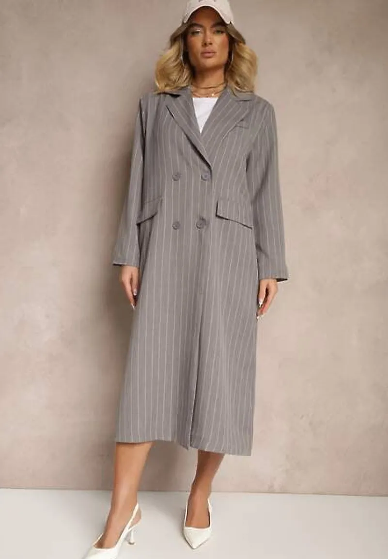 Płaszcz Lanaritia o dwurzędowym kroju w stylu marynarki to idealne połączenie elegancji i nowoczesnego designu, doskonałe na sezon przejściowy. Jego długie rękawy i klasyczny fason nadają szyku każdej stylizacji, zarówno na biznesowe spotkanie, jak i na wieczorne wyjście. Wzór w paski dodaje mu nuty wyrafinowania, a delikatne zdobienia podkreślają jego unikalny charakter. Świetnie uzupełni zarówno casualowy look z jeansami i botkami, jak i formalną stylizację z elegancką sukienką i wysokimi obcasami. Płaszcz posiada wszyte w ramionach poduszki oraz podszewkę (skład: 100% poliester).