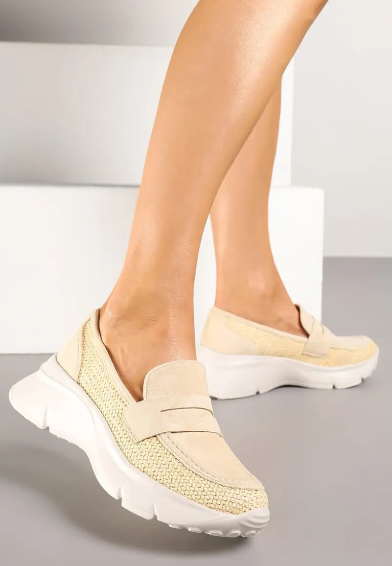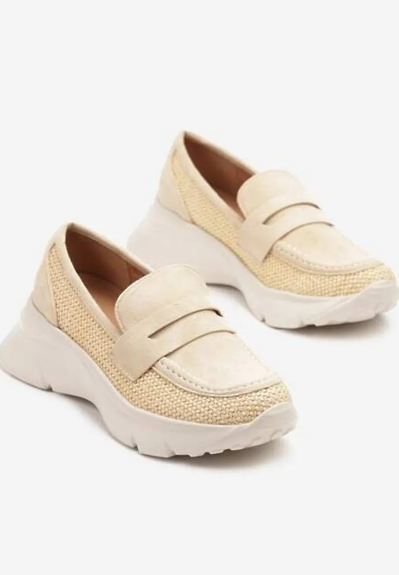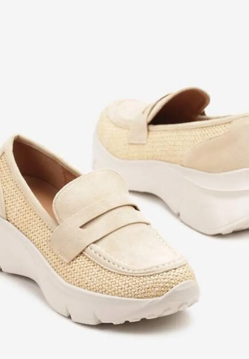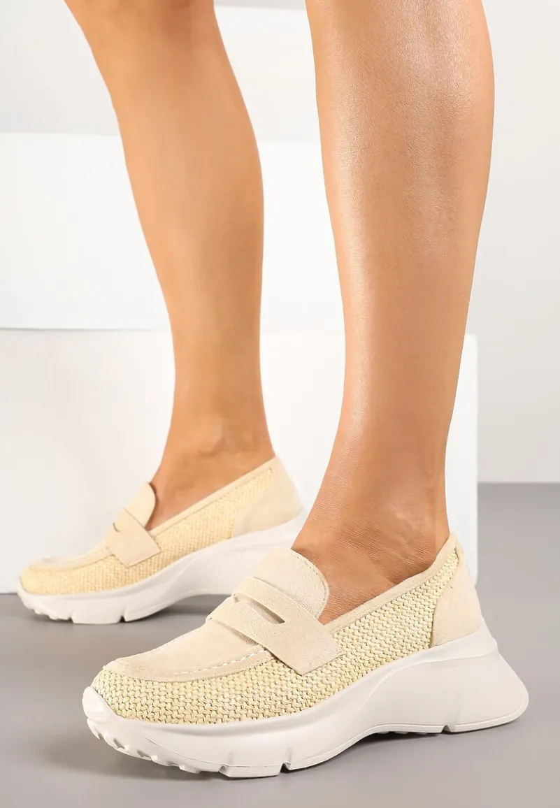 Półbuty na Platformie Ozdobione Plecionką Fallesa to prawdziwe must-have dla każdej miłośniczki mody, której niestraszne są nowoczesne stylizacje. Osadzone na stabilnym platformowym obcasie, charakteryzują się klasycznym, pełnym wyrazu fasonem z zaokrąglonym noskiem i plecioną ozdobą. Idealne na sezon wiosenno-letni, dopełnią Twój look zarówno w codziennych stylizacjach z jeansami i białą koszulą, jak i na formalne okazje w zestawieniu z elegancką sukienką.
