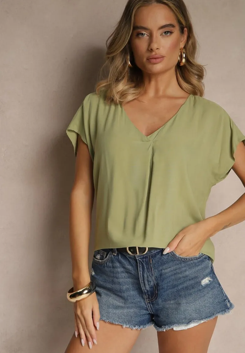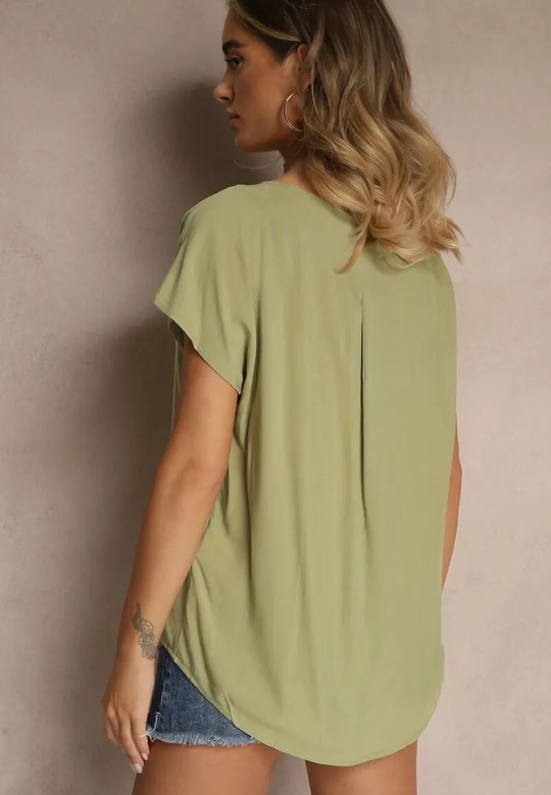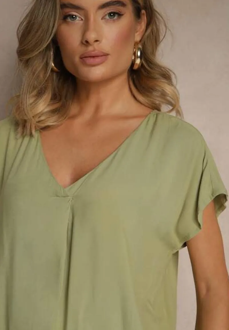 Bluzka z Wiskozy z Trójkątnym Dekoltem Tilimira to idealny wybór dla każdej modnej kobiety, która pragnie wyglądać stylowo. Krój z trójkątnym dekoltem oraz luźniejsze rękawy tworzą efektowną sylwetkę. Ta bluzka świetnie sprawdzi się na co dzień w połączeniu z ulubionymi jeansami i sneakersami. Zdobądź ten uniwersalny model, który stanie się podstawą wielu udanych stylizacji!