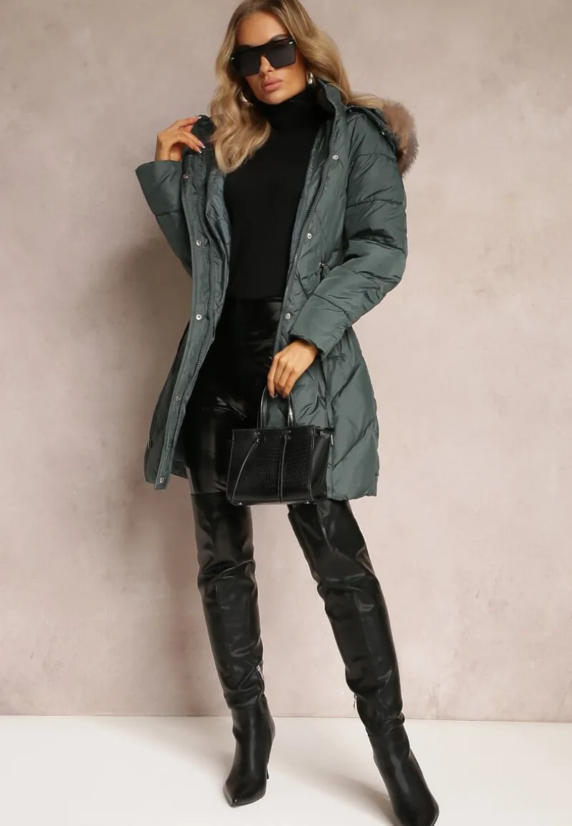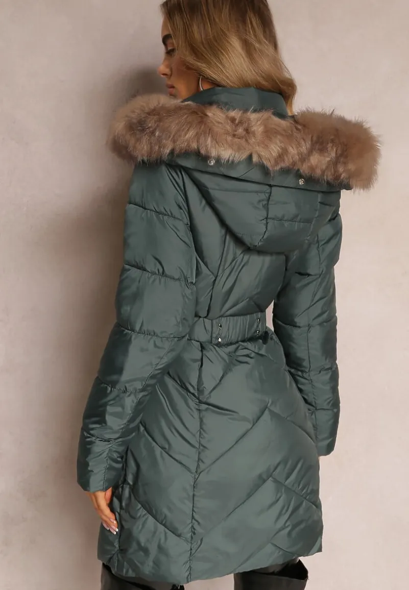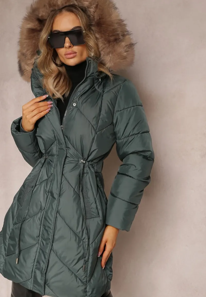 Kurtka Abelasa – idealnie podkreśla talię, jest delikatnie pikowana i ozdobiona sztucznym futerkiem.