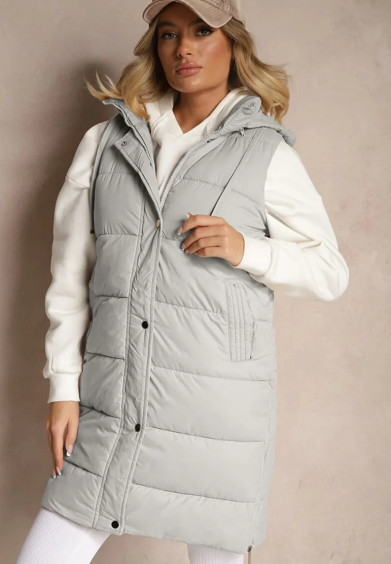 Kamizelka Pikowana z Kapturem Ozdobiona Sznurkami Eleandra to must-have w Twojej szafie! Idealna zarówno na co dzień, jak i na eleganckie wyjścia, wyróżnia się oryginalnym designem i subtelnymi sznurkami, które dodają jej charakteru. Dzięki odpinanemu kapturowi i wsuwanym kieszeniom zapewnia komfort podczas noszenia, a jej fason z bocznymi suwakami doskonale podkreśla sylwetkę. Połącz ją z ulubionymi jeansami i botkami w wersji casualowej, a na formalne spotkanie zestaw z elegancką sukienką i klasycznymi szpilkami – zachwycisz wszystkich swoim wyjątkowym wyczuciem stylu!