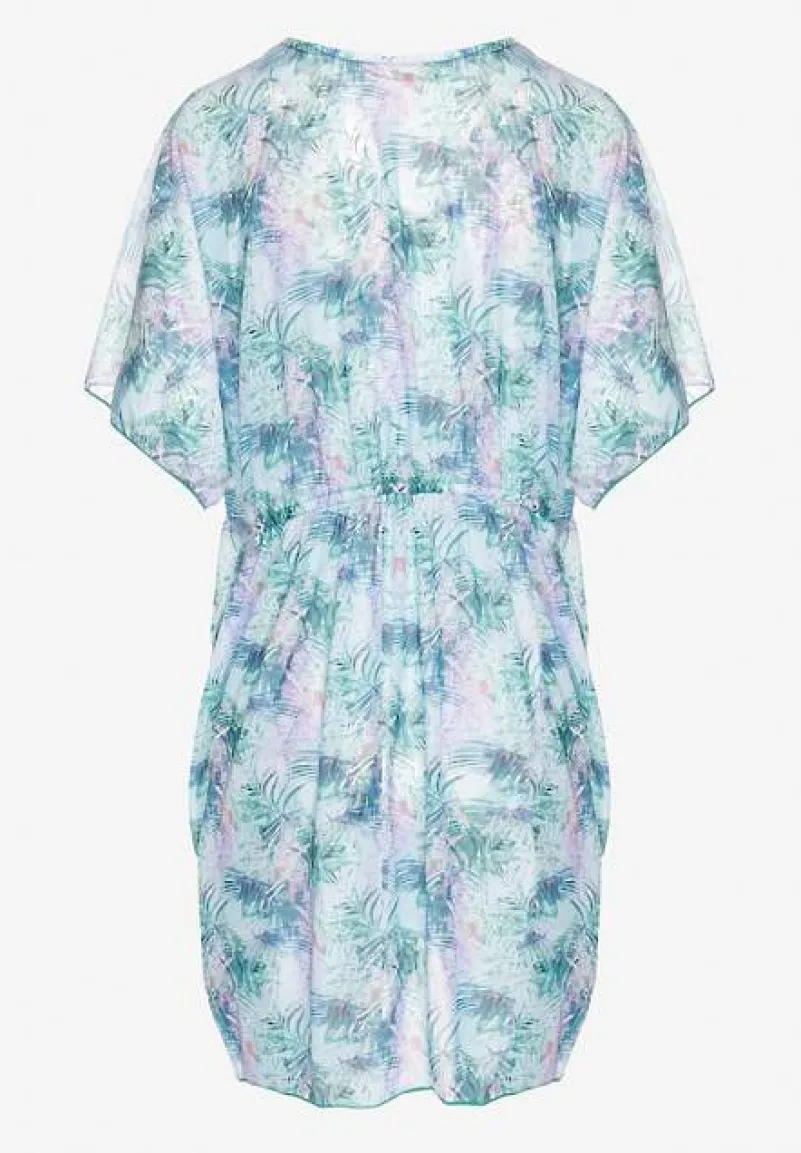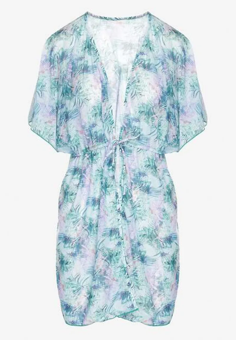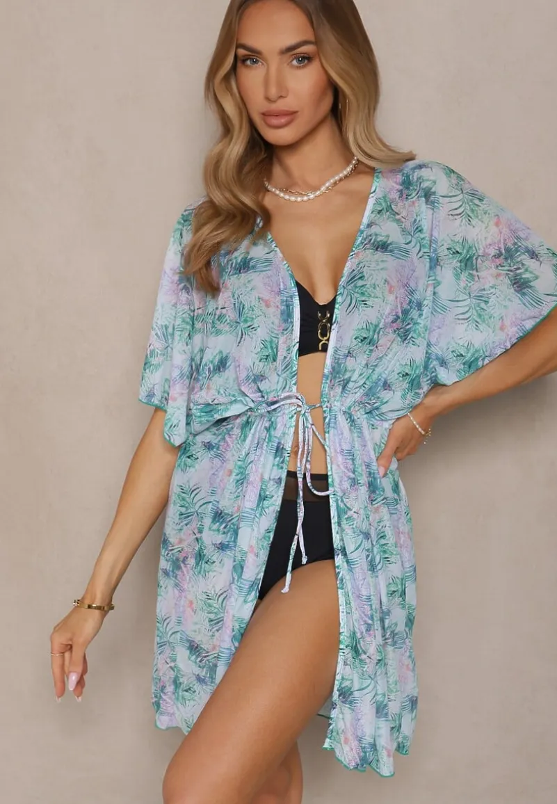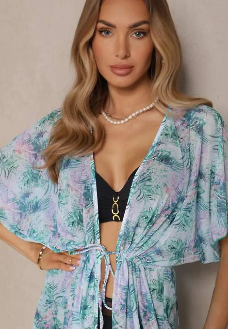 Narzutka Plażowa z Wiązaniem w Kwiatowy Wzór Mevelaura to must-have w letniej garderobie każdej modnej kobiety! Lekkość fasonu i kwiatowy wzór dodają uroku i subtelności, idealnie komponując się z plażowym lookiem. Dzięki wiązaniu w talii możesz podkreślić swoją sylwetkę. Zestaw ją z ulubionymi szortami i klapkami na plaży lub z sukienką maxi i sandałami na wieczorne wyjście — zawsze w modnym stylu!