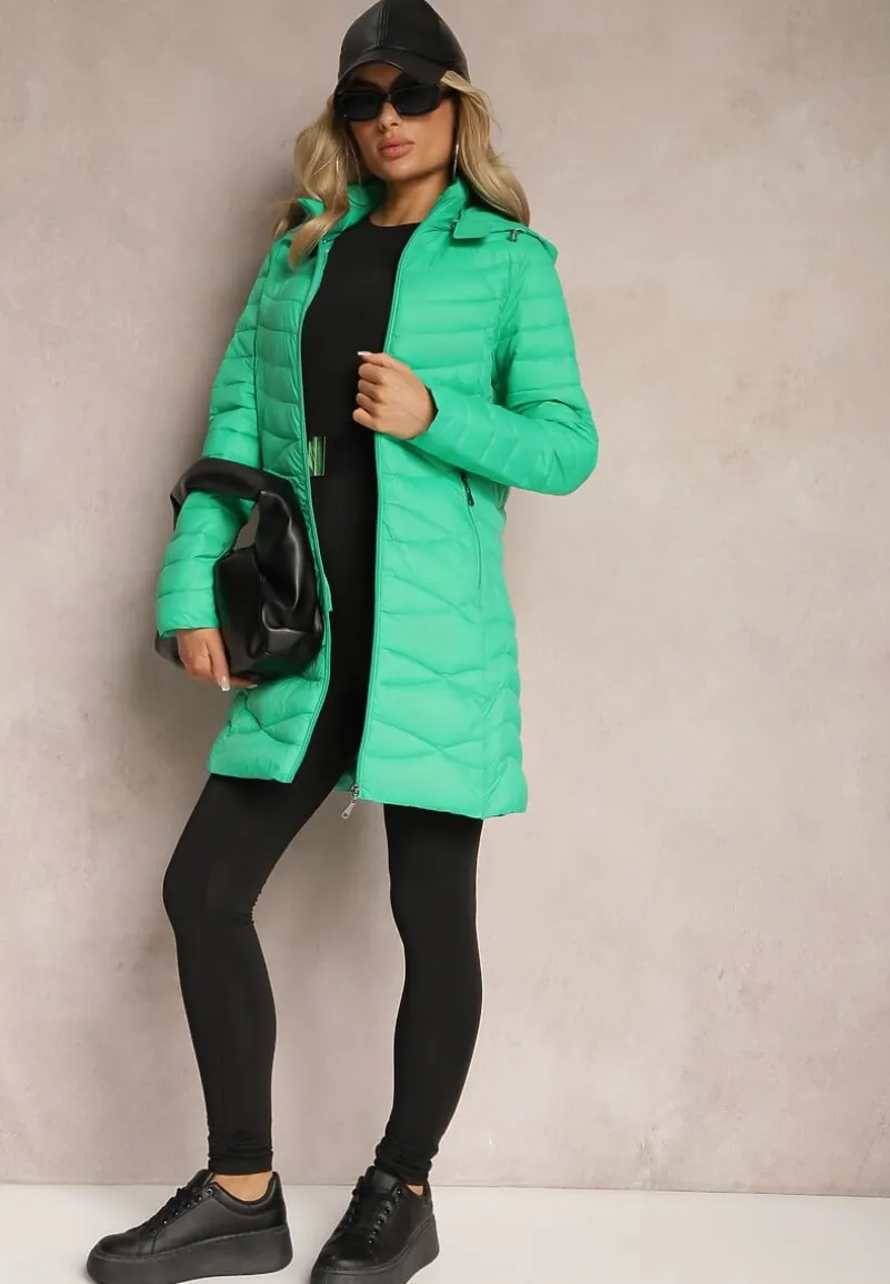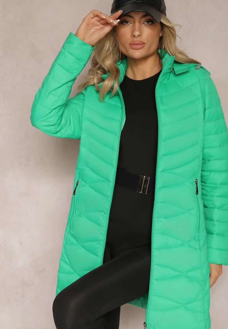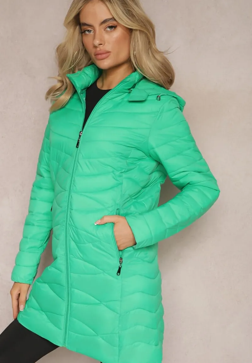 Kurtka Julioa z fantazyjnym pikowaniem i odpinanym kapturem. Sięga do połowy kolana. Zasuwana z przodu na zamek błyskawiczny. Zasuwane kieszenie na wysokości bioder. Lekko ocieplana.