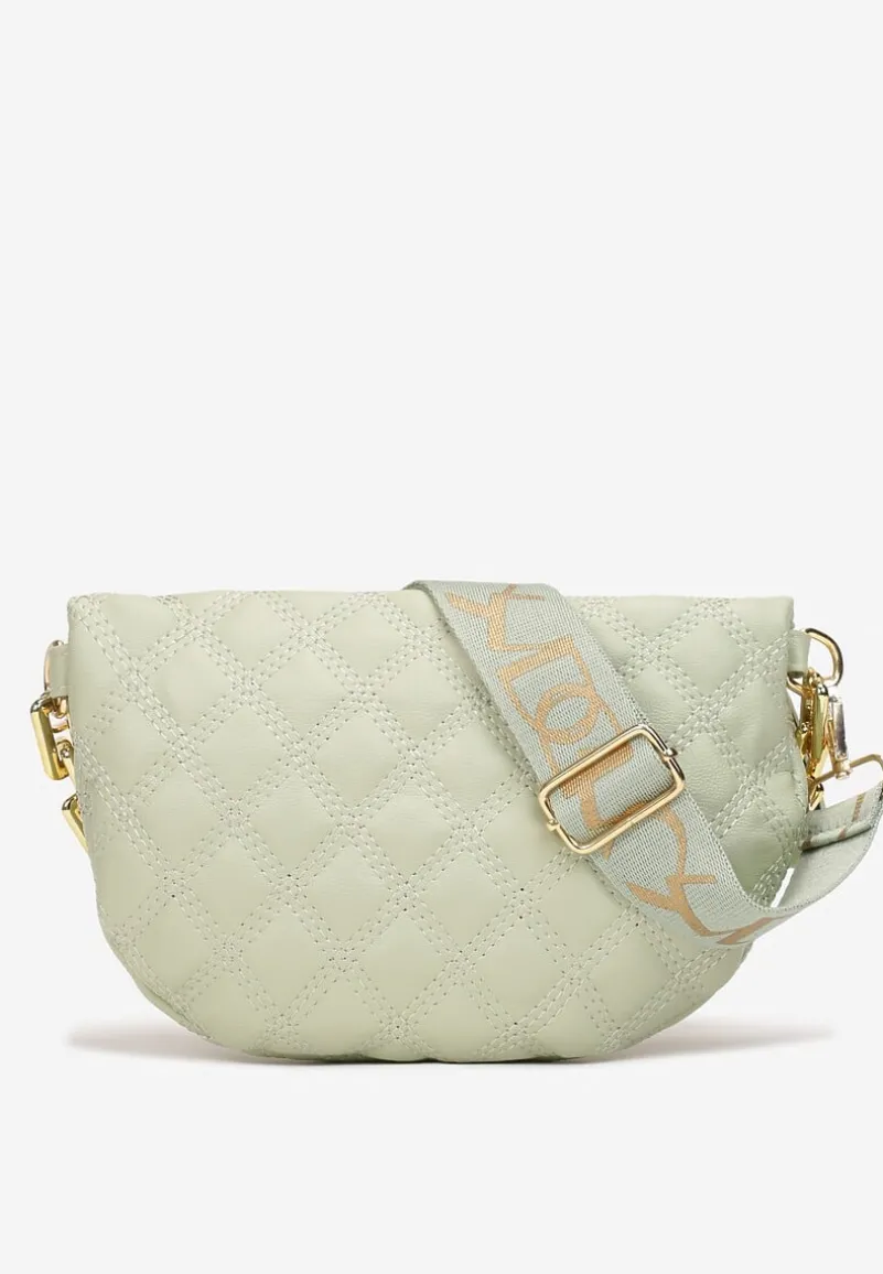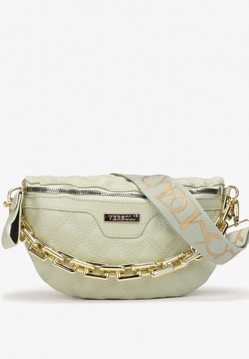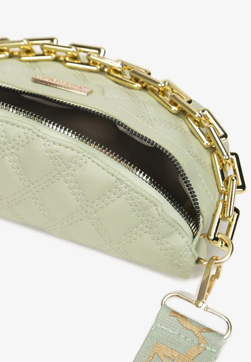 Nerka Cotha zawieszona na materiałowym, wzorzystym pasku z możliwością regulacji i uchwycie z grubego łańcucha. Pikowana, elegancka, zapinana na suwak.