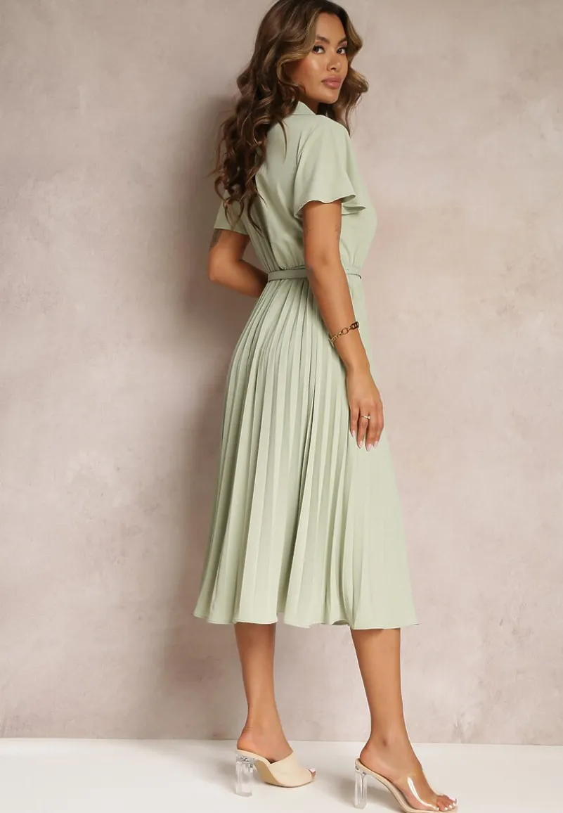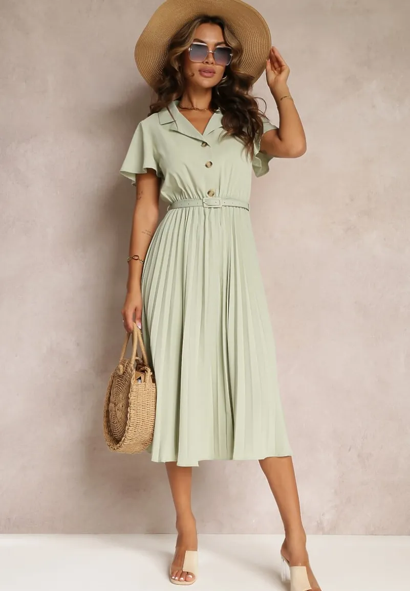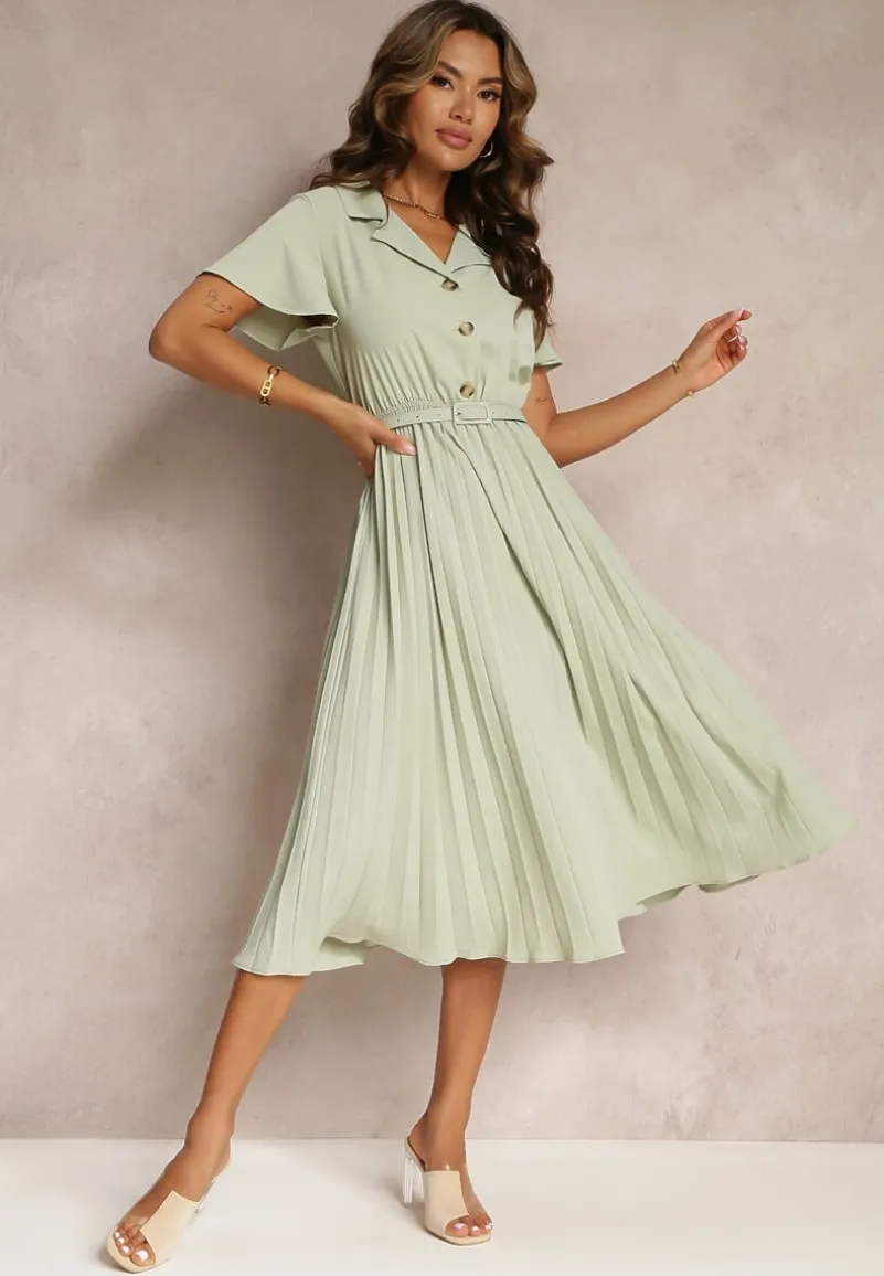 Sukienka Elinerise posiada elastyczną gumkę (po rozciągnięciu S – 93 cm, M – 97 cm, L – 101 cm). Jest zapinana na modne, większe guziki w stylu retro, a dół jest wykończony plisami.