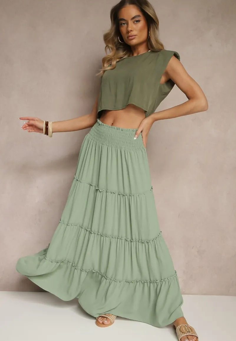 Zachwyć się romantycznym fasonem rozkloszowanej spódnicy Dovinelle, która idealnie podkreśla Twoją talię dzięki elastycznej gumce. Doskonała na każdą okazję – od casualowych wypadów na miasto po eleganckie spotkania – ta spódnica na pewno przyciągnie spojrzenia! Zdobiona subtelnymi falbanami, dodaje lekkości i szyku, sprawiając, że poczujesz się pewnie i swobodnie w każdej sytuacji. Na co dzień noś ją z T-shirtem i balerinkami, a na wieczorne wyjście postaw na elegancki kardigan oraz sandałki na obcasie. Efekt wow gwarantowany!