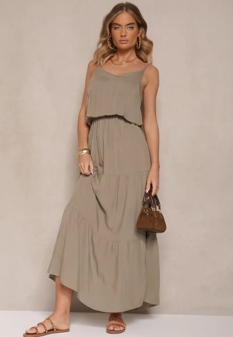 Odkryj wyjątkową rozkloszowaną sukienkę z wiskozy Flesira! Elegancki fason na regulowanych ramiączkach oraz delikatny dekolt o zaokrąglonym kształcie subtelnie podkreślą Twoją sylwetkę, a gumka w talii zapewni doskonałe dopasowanie. Idealna na letnie przyjęcia czy wieczorne wyjścia, sprawdzi się zarówno w codziennych, jak i bardziej formalnych stylizacjach. Połącz ją z espadrylami i plecioną torebką lub zestaw z klasycznymi szpilkami i delikatną biżuterią, a stworzysz look, który przyciągnie spojrzenia! Sukienka nie posiada podszewki.