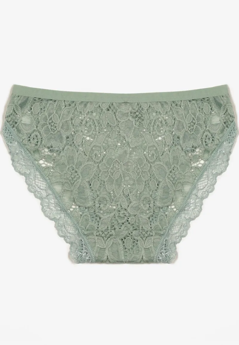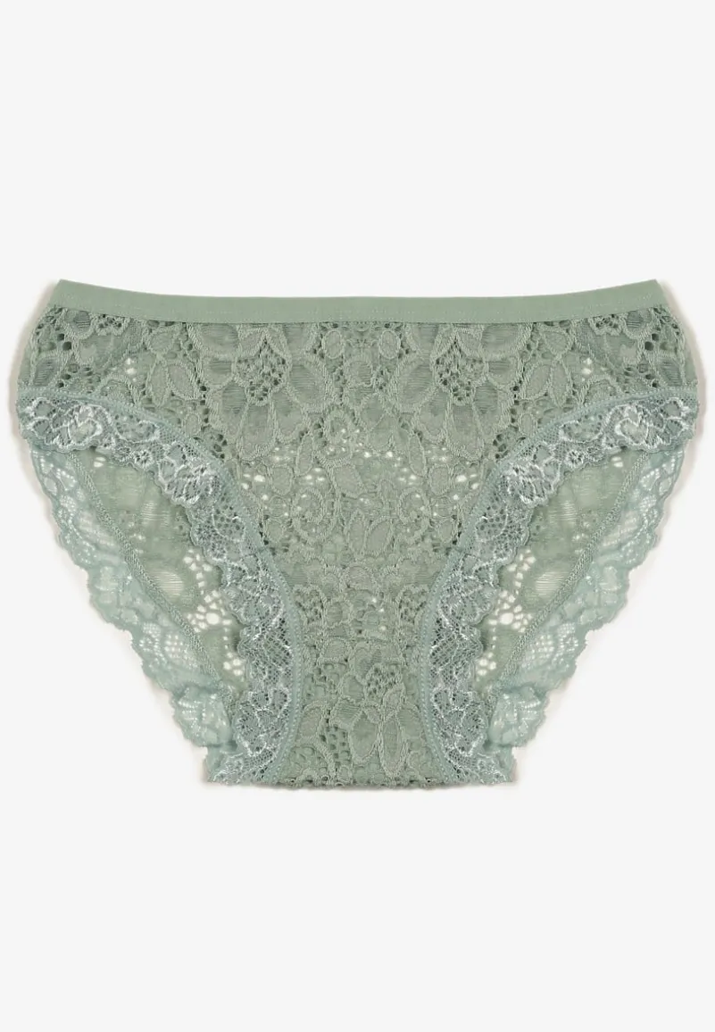 Majtki tpu figi Vleova wykonane z elastycznej bawełny. Ozdobione koronką z kwiatowym motywem. Pięknie się komponują z koronkowym biustonoszem.