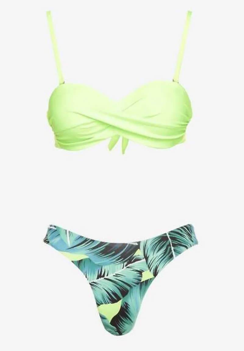 Zielone Bikini 3-częściowe Biustonosz z Wiązaniem Majtki Figi i Bokserki Vinalle