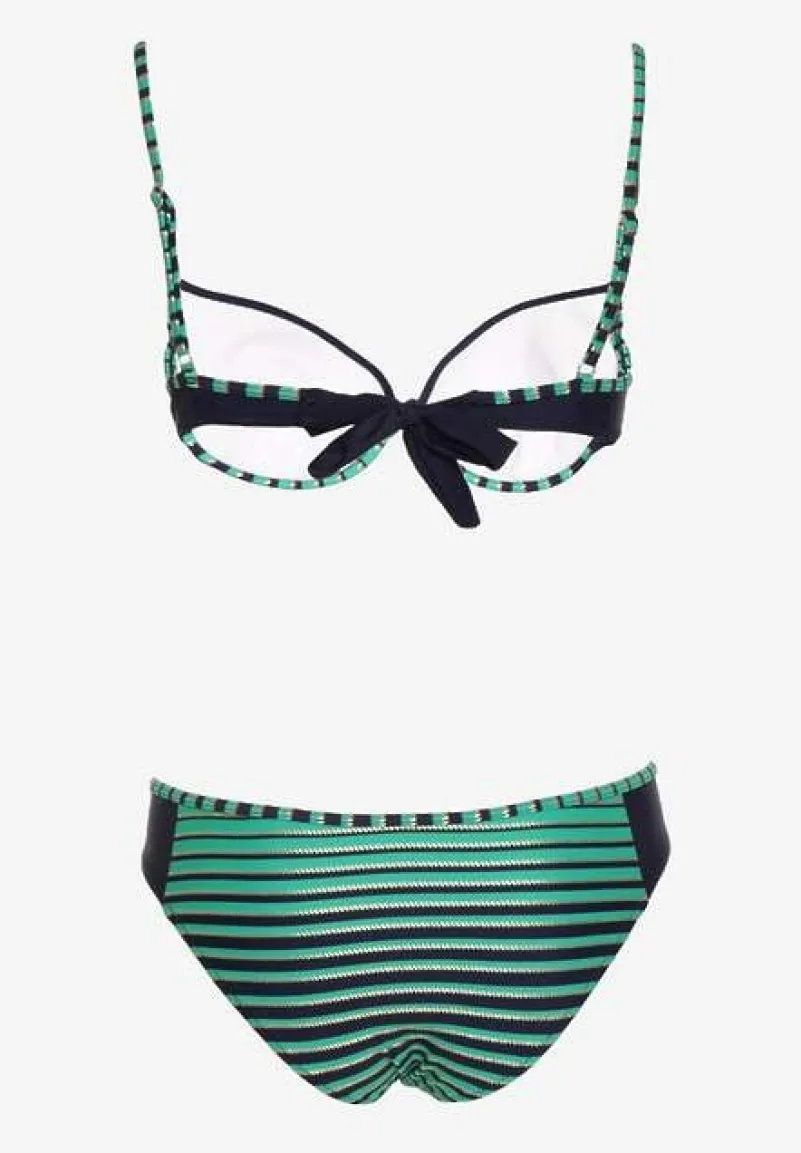 Zielone Bikini Dwuczęściowe w Paski Biustonosz i Figi Wialisa