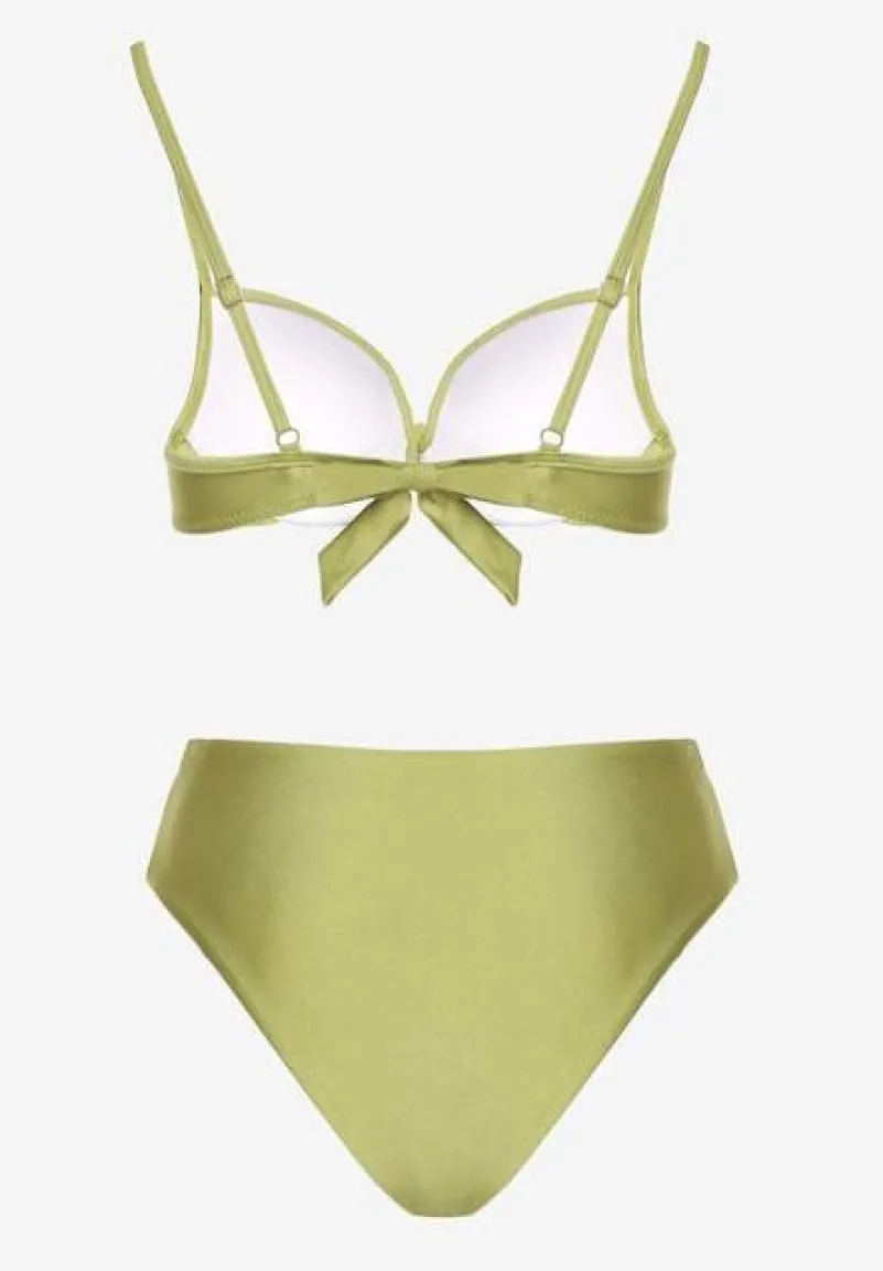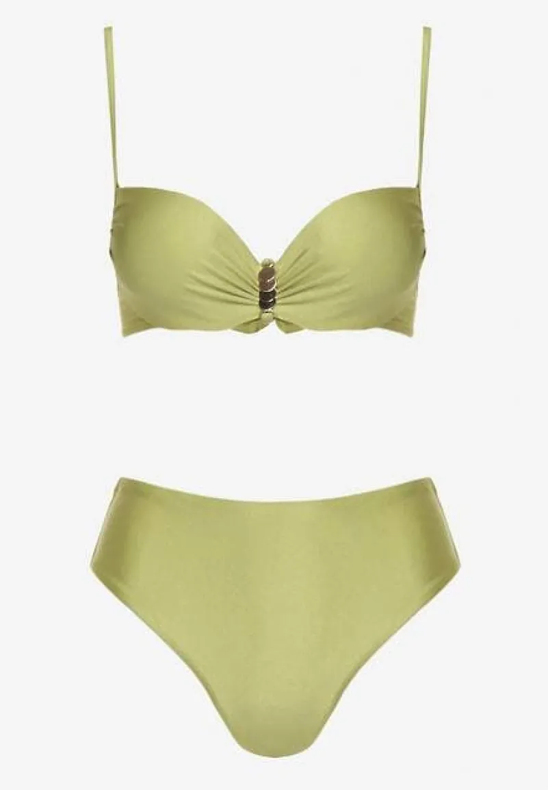 Zielone Bikini Majtki Figi i Biustonosz z Metaliczną Ozdobą Kinalenna