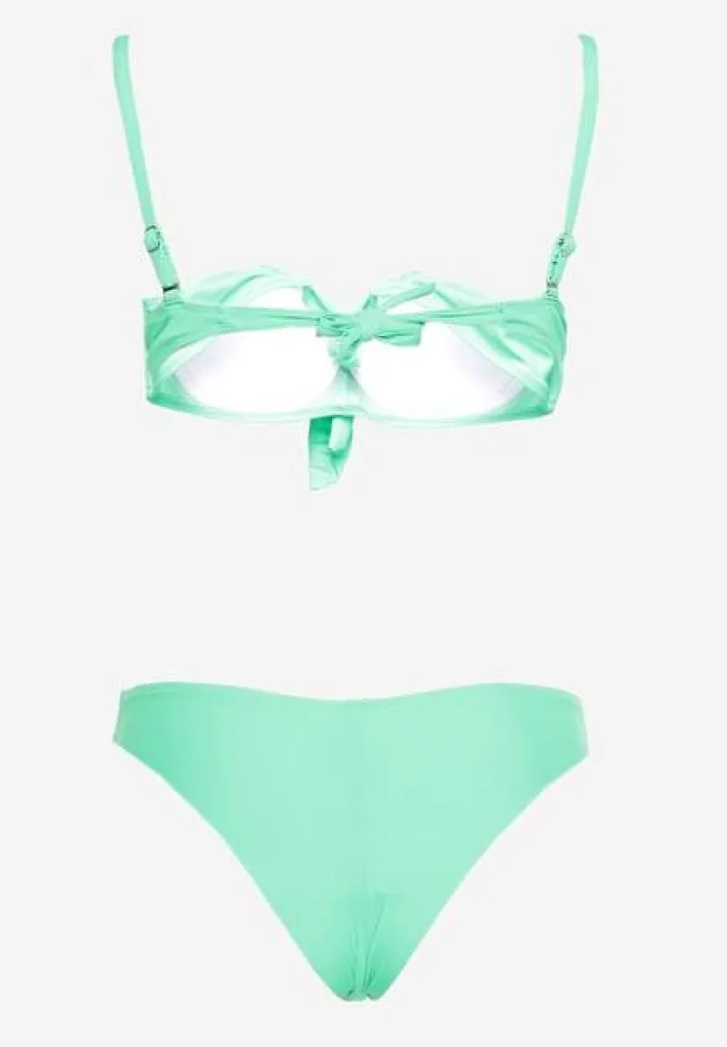 Zielone Bikini Majtki Figi i Usztywniany Biustonosz na Ramiączkach z Regulacją i Ozdobnym Wiązaniem Celiamarie