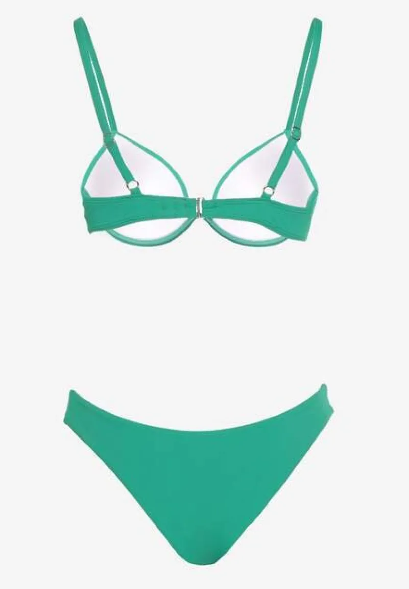 Zielone Bikini Usztywniany Biustonosz z Zapięciem z Tyłu i Majtkami Figami Ermarie