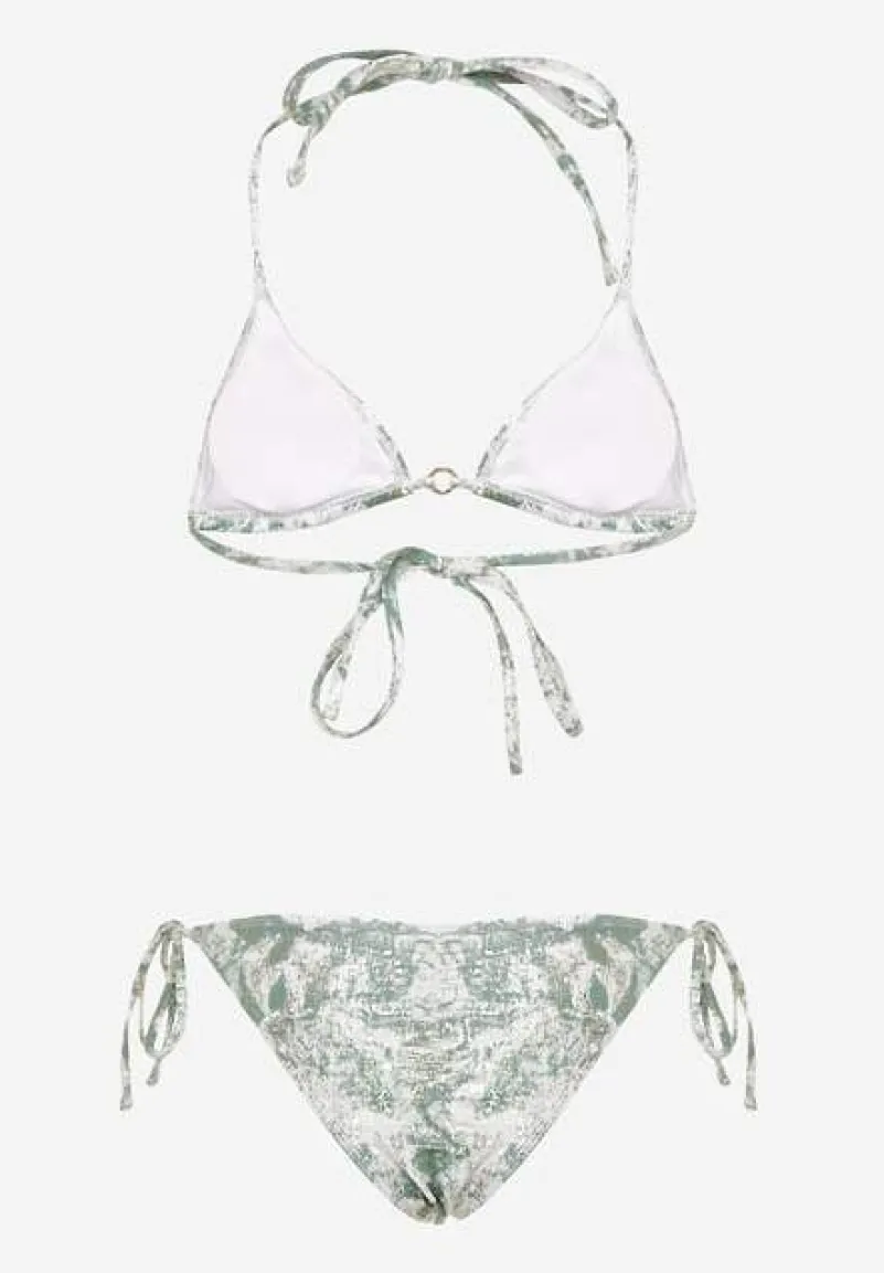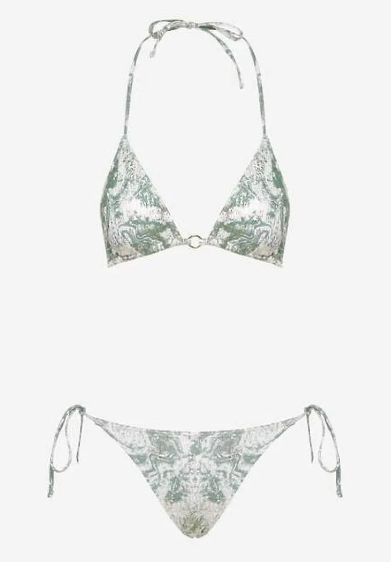 Zielone Dwuczęściowe Bikini Biustonosz z Wiązaniami na Szyi i Plecach Wiązane Majtki Yezvia