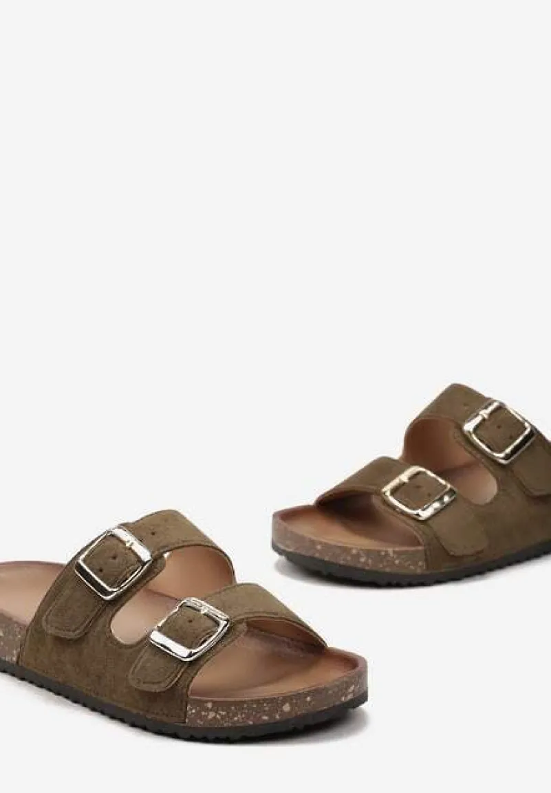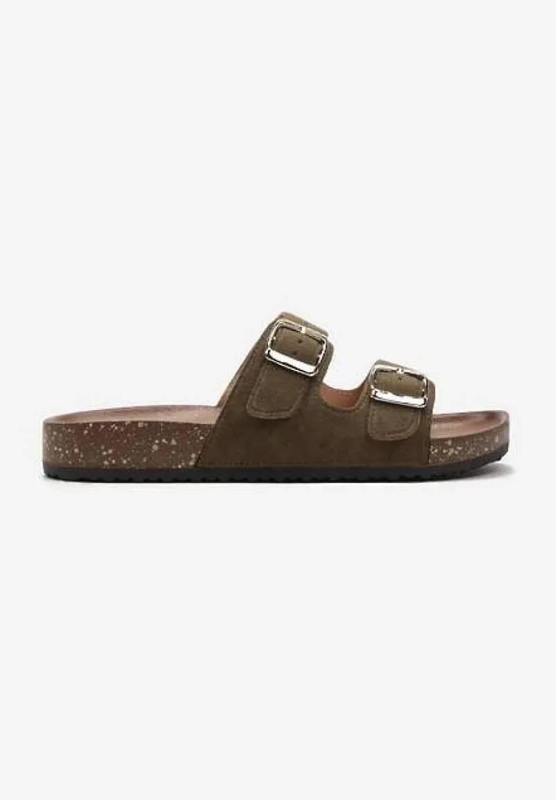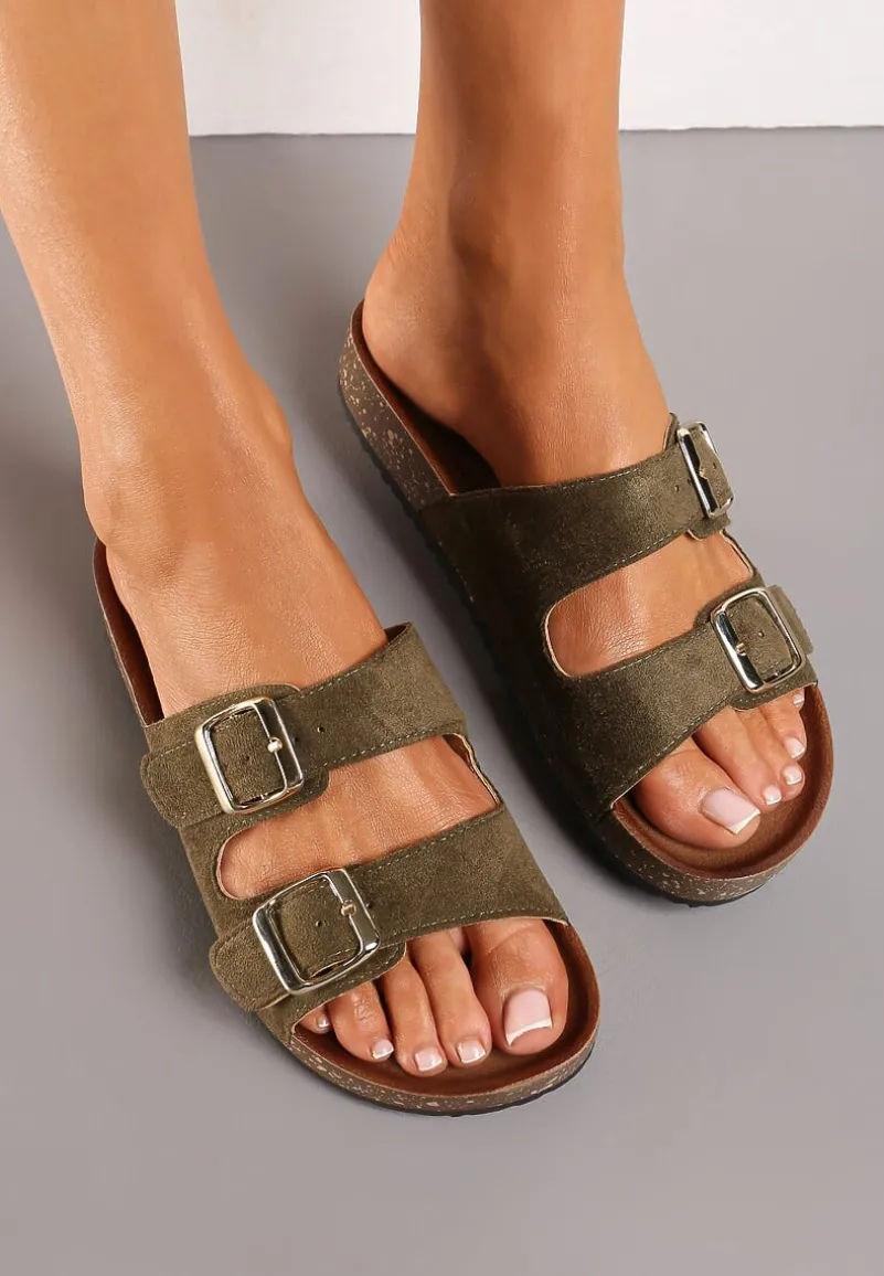 Klapki z Ekozamszu z Profilowaną Wkładką z Paskami i Klamrami Lettiea to must-have w garderobie każdej modnej kobiety! Te klapki idealnie pasują zarówno do casualowych stylizacji, jak i na letnie garden party. Stylizuj je z ulubionymi szortami i lekką bluzką na co dzień– jesteś gotowa na wszystko!