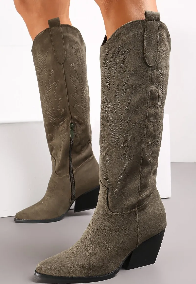 Kozaki Cevilla — fason kowbojki, osadzone na niewysokim, stożkowym obcasie. Urztmane w jednolitym kolorze. Nieocieplane.