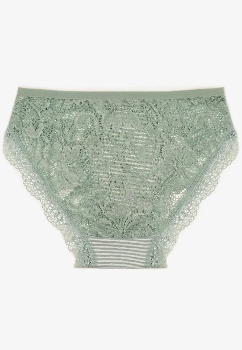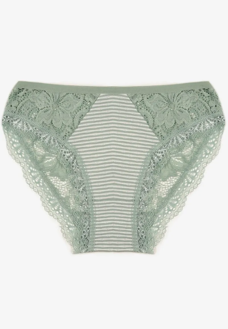 Bawełniane majtki figi Olibia ze wzorem w paseczki i koronką. To nie tylko piękny, ale także wygodny w noszeniu element garderoby.