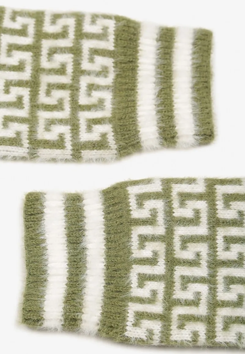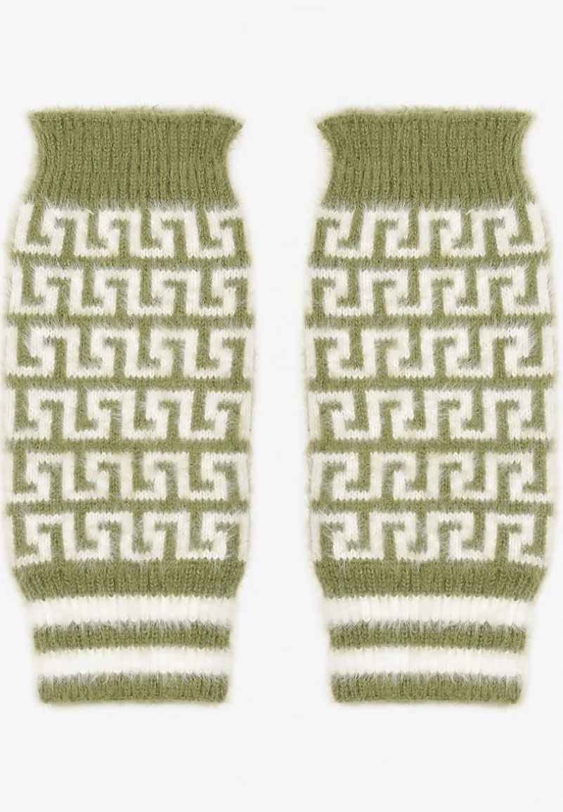 Zielone Rękawiczki z Wełną o Fasonie Bez Palców z Geometrycznym Wzorem Tosline