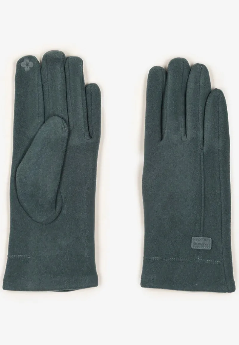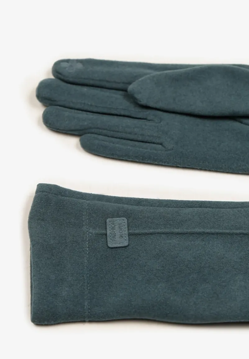 Zielone Rękawiczki Zimowe z Bawełną Ozdobione Aplikacją Gralemi