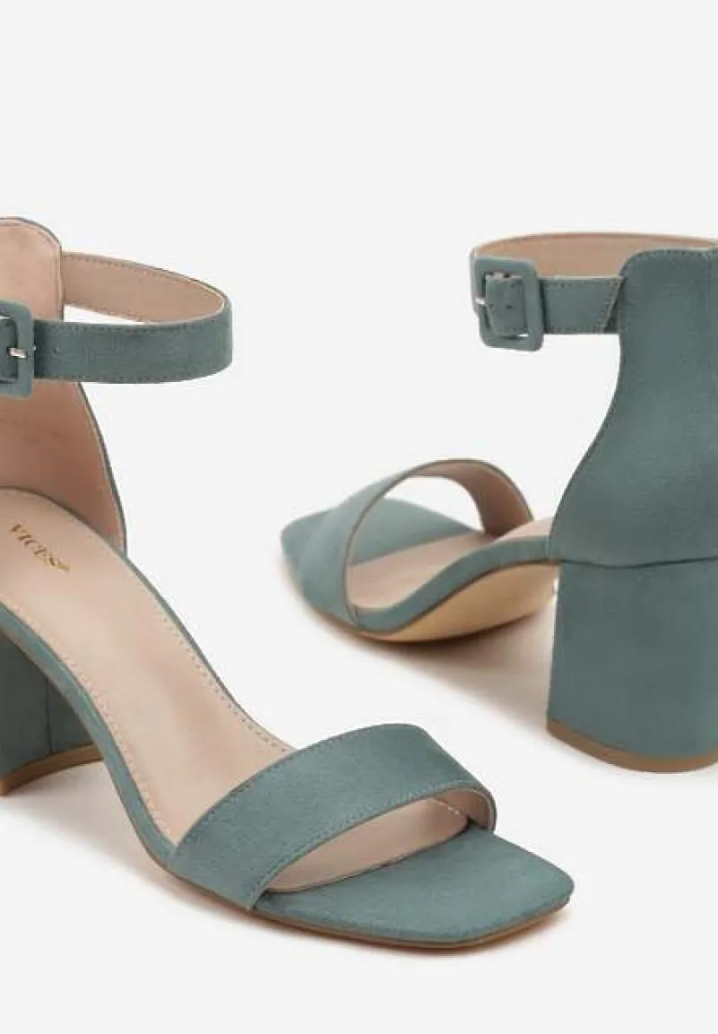 Zielone Sandały Vices na Słupkowym Obcasie z Paskiem wokół Kostki Grisea