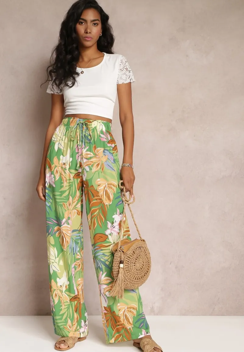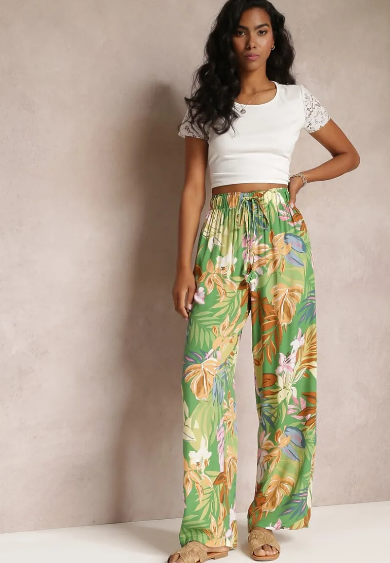 Dopełnij swoją stylizacje z szerokimi Spodniami Alaysa wykonane z wiskozowej tkaniny w kwiaty. Szeroki krój, w pasie wszyta gumka oraz ściągane troczkiem. Po bokach wsuwane kieszenie.