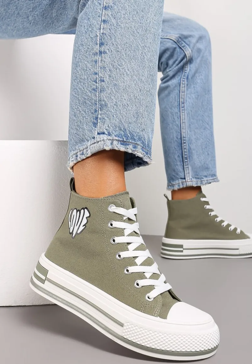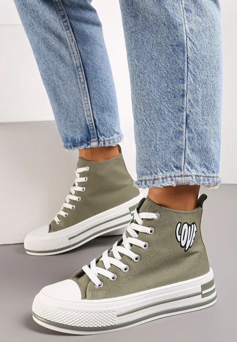 Trampki Bretva na grubszej podeszwie z cholewką za kostkę i ozdobną naszywką z napisem Love. Z przodu sznurowane. Trampki Bretva to modowy klasyk, którego nie może zabraknąć w Twojej garderobie.