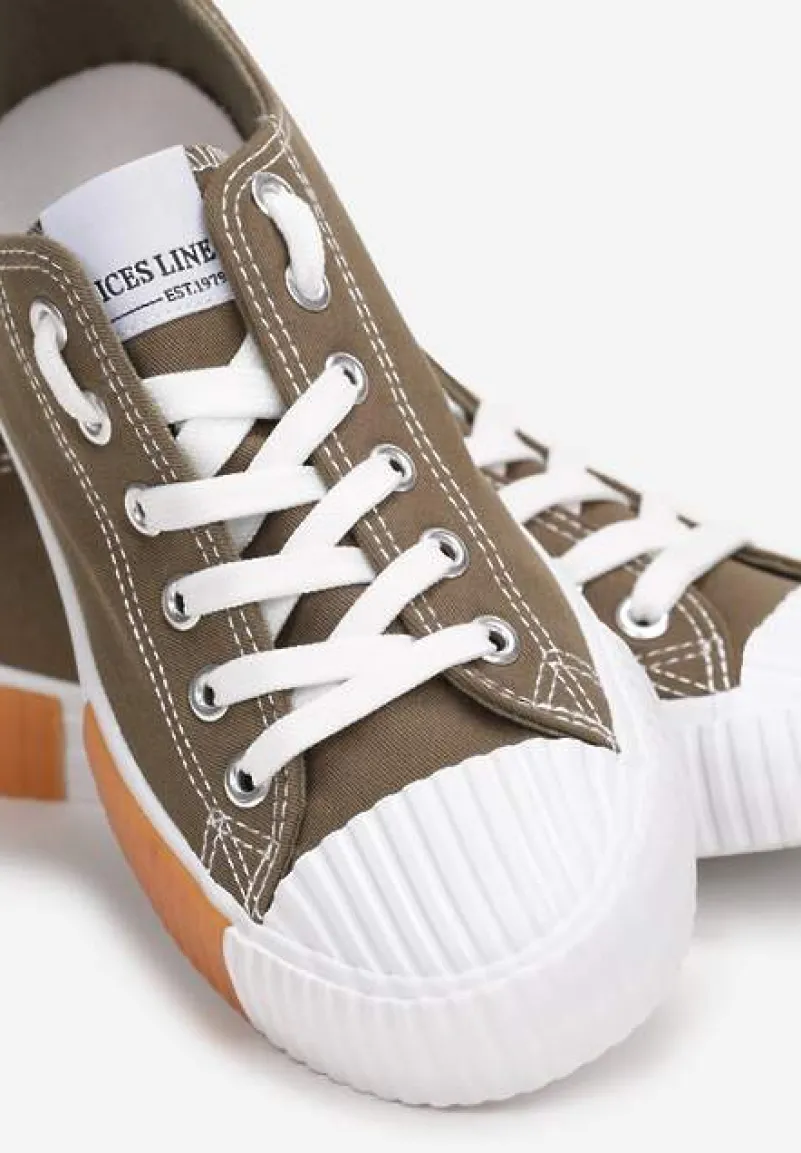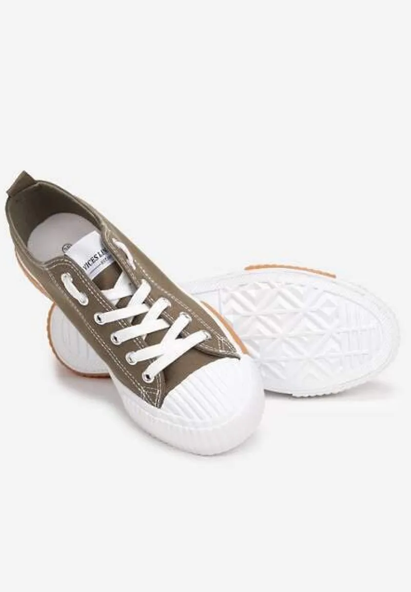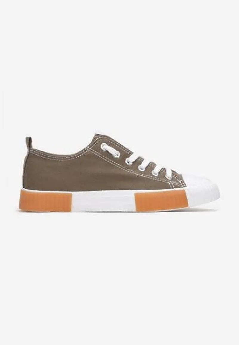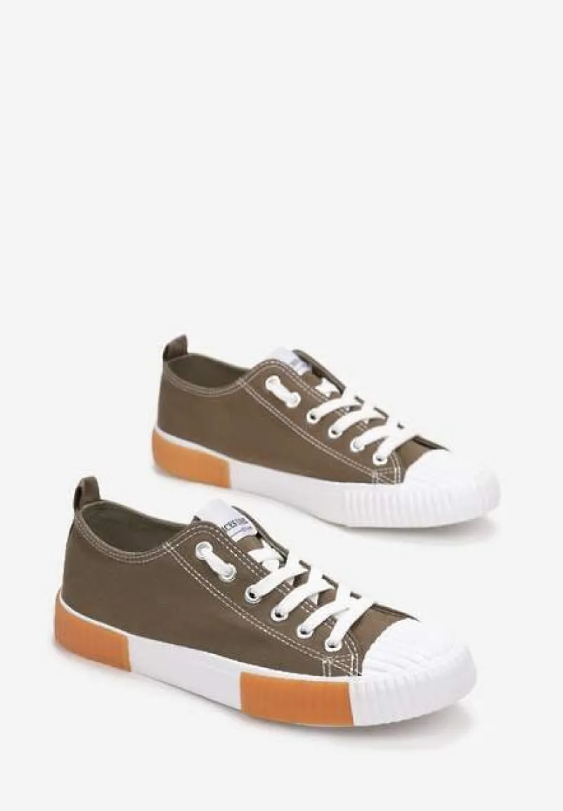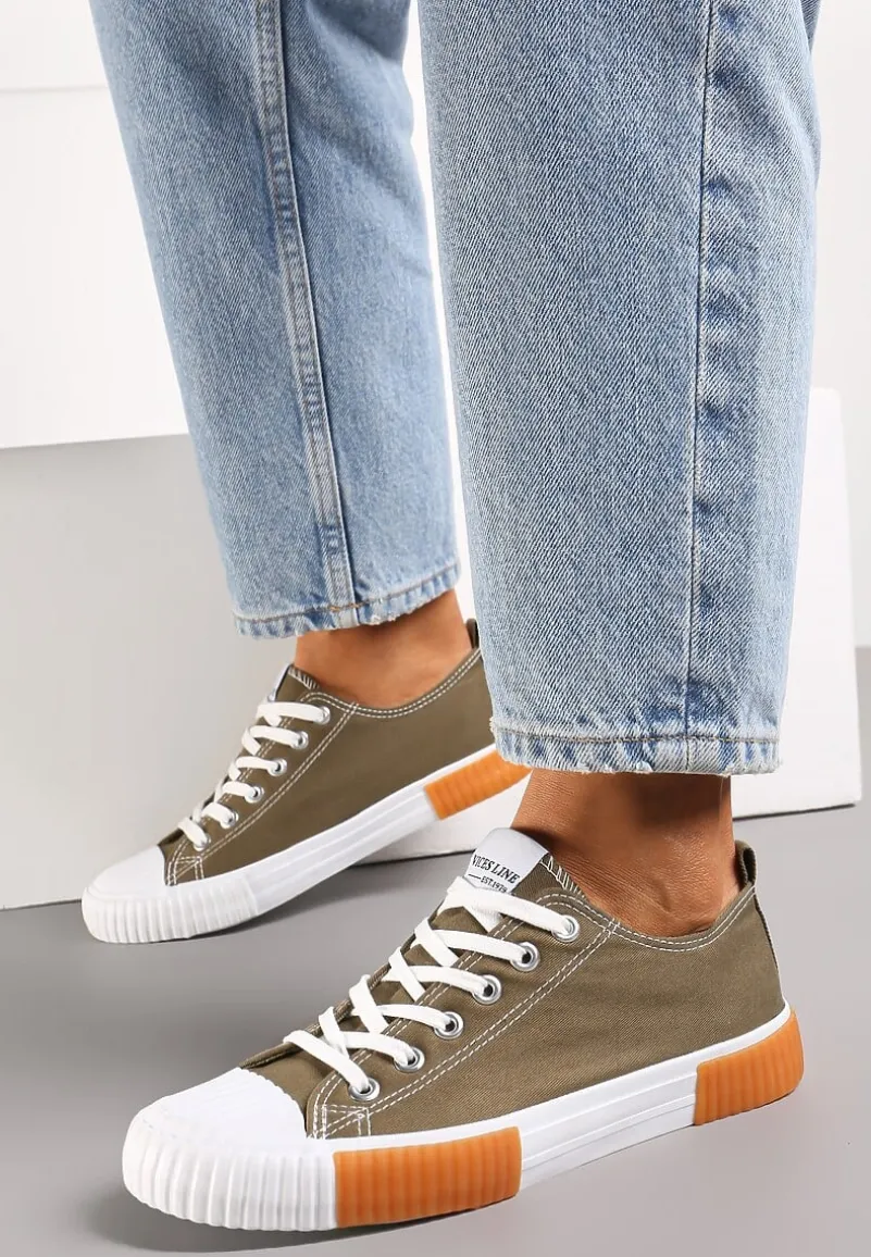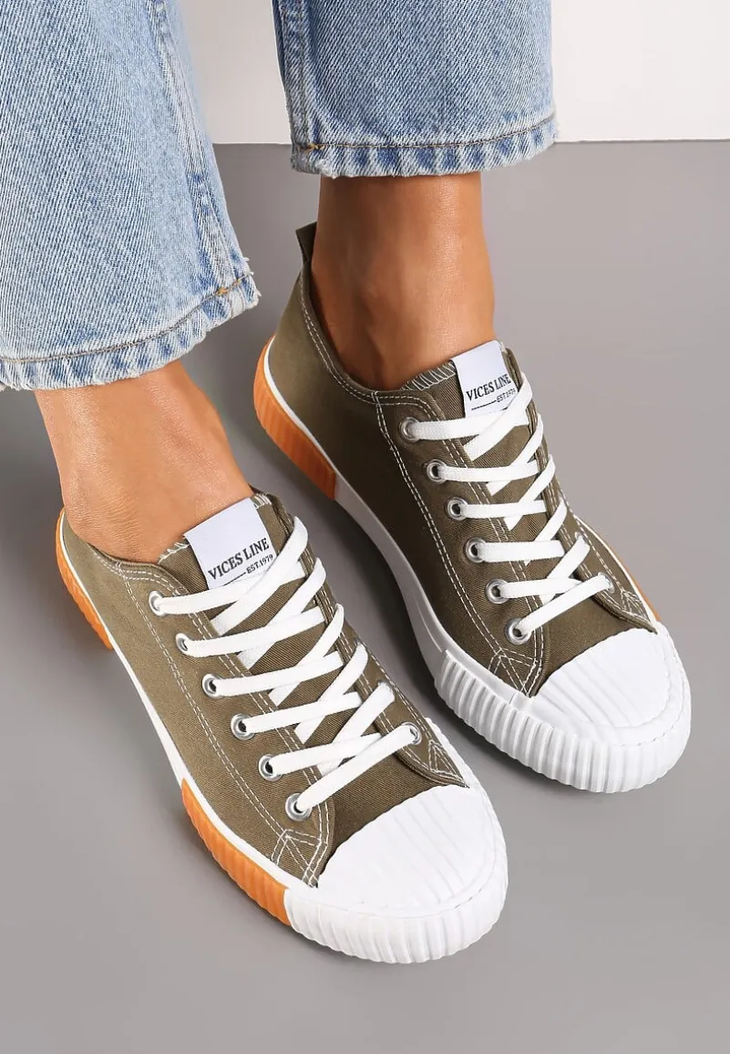 Trampki Athizephila niskie, sięgające przed kostkę. Osadzone na gumowej, białej podeszwie z pomarańczowymi wstawkami. Okrągły, gumowy nosek pokryty perforacją. Wiązane na górze na płaskie sznurowadła. Wykonane z materiału tekstylnego. Założysz je i do dzianinowego kompletu, i do casualowej sukienki albo szerokich spodni. Wybierz większy rozmiar.
