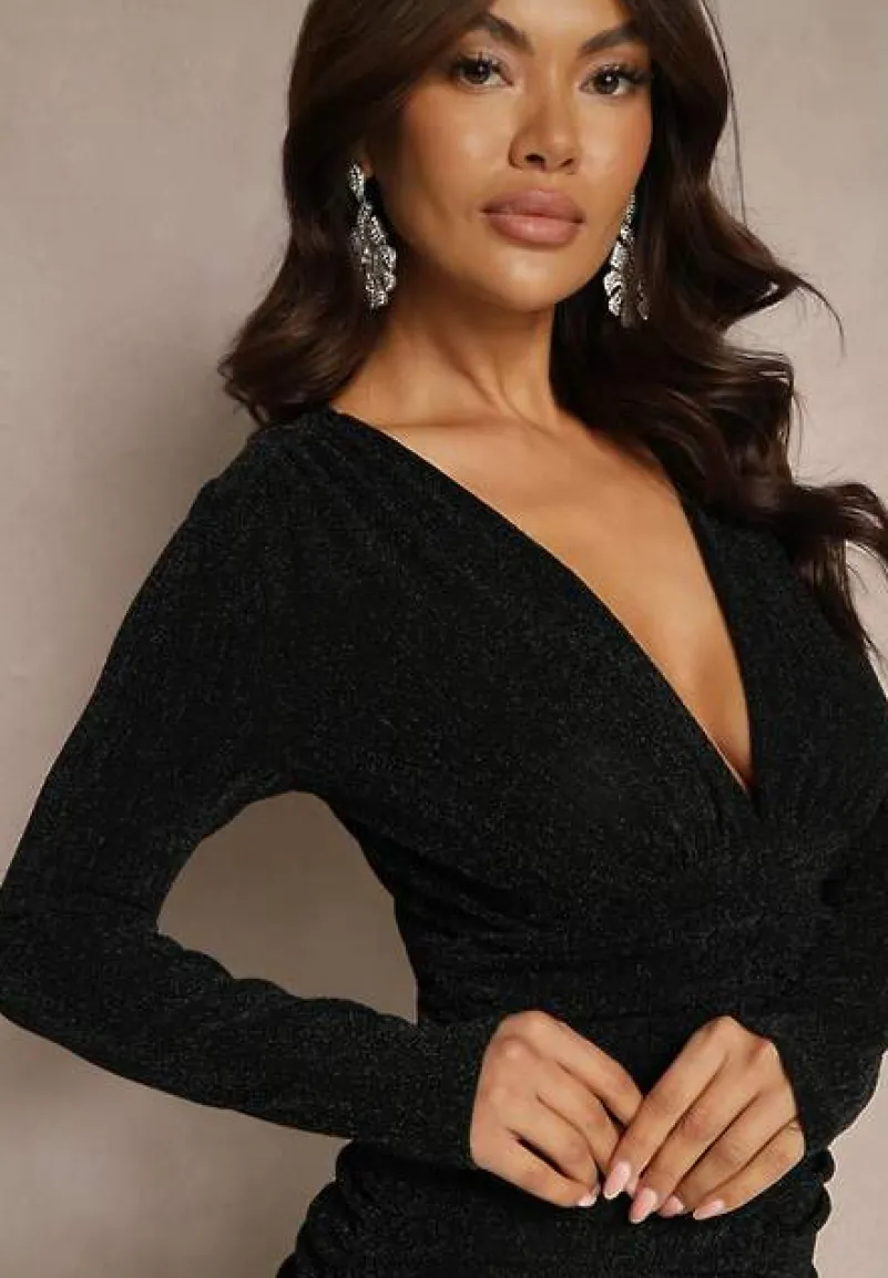 Zielono-Czarna Taliowana Sukienka z Wiskozą Metaliczną Nicią i Marszczeniem Ninnilea