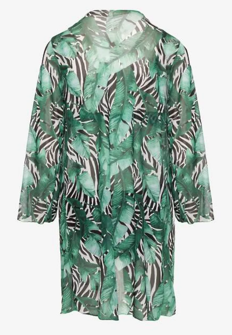 Zielono-Czarne Bikini Majtki Figi Biustonosz i Siateczkowa Narzutka Folanisse