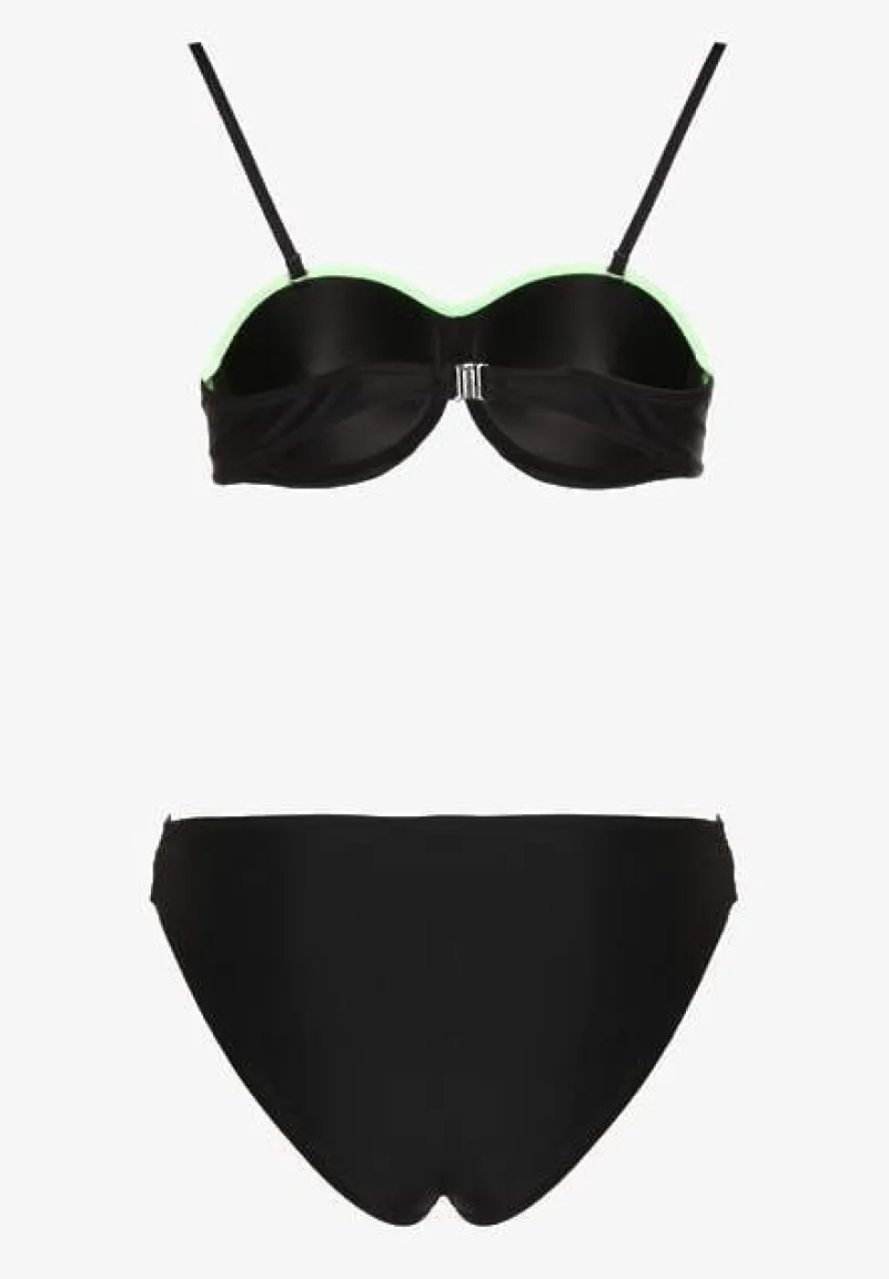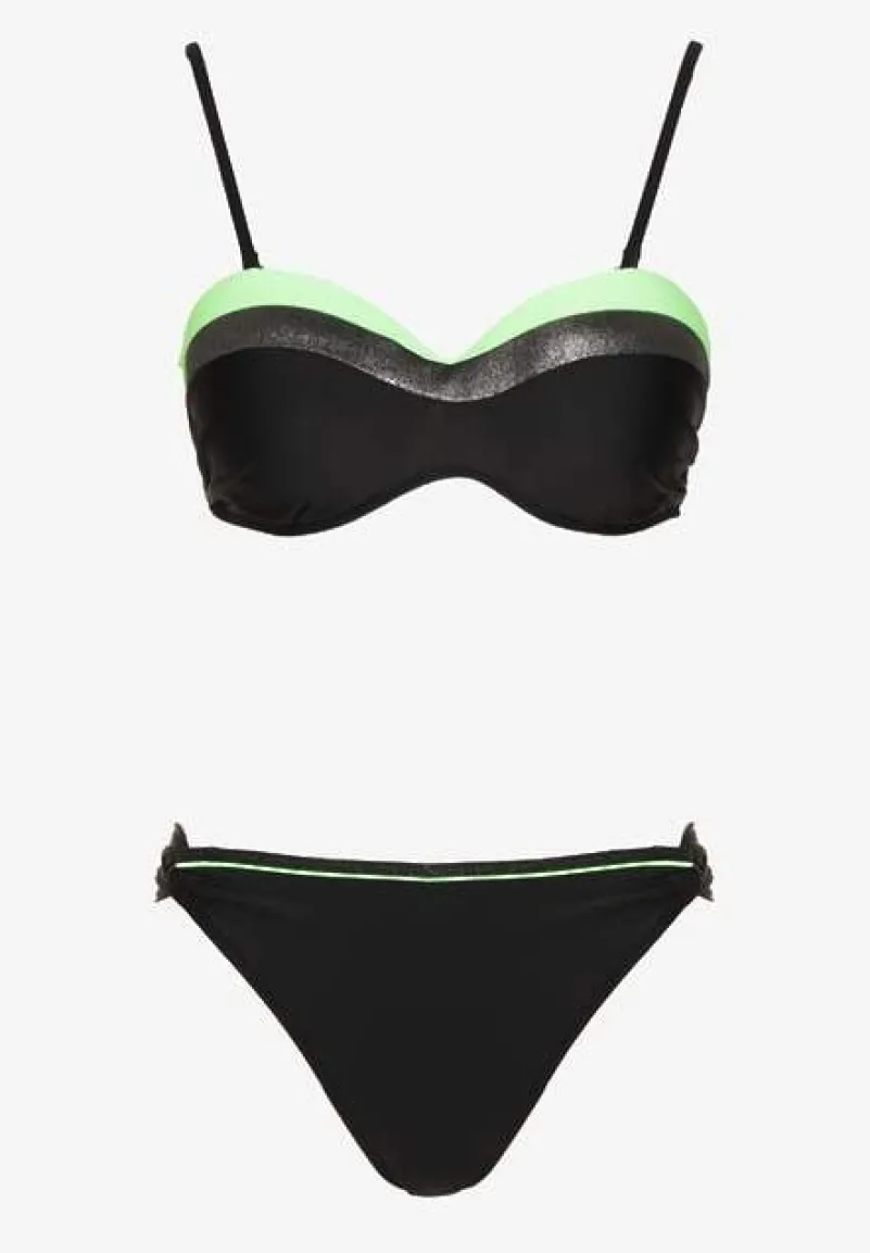 Zielono-Czarne Bikini z Metaliczną Nicią Usztywniany Biustonosz i Figi Mitelle