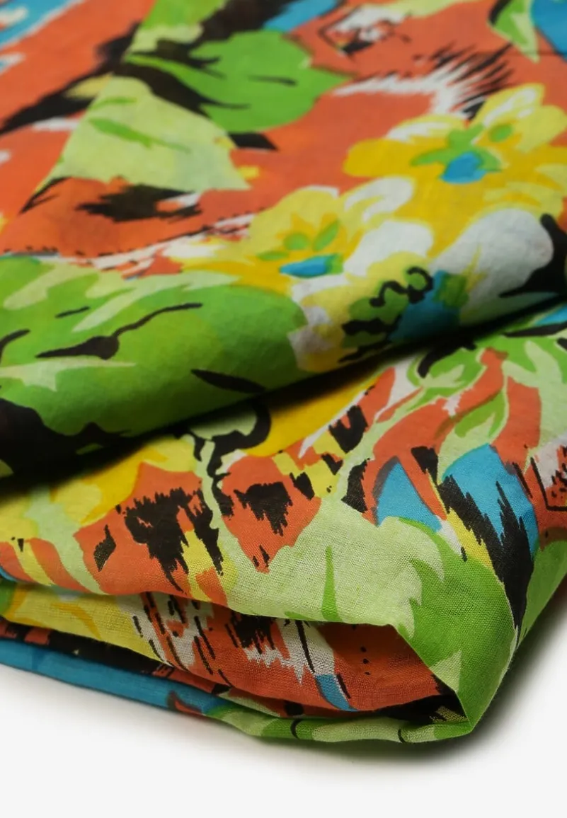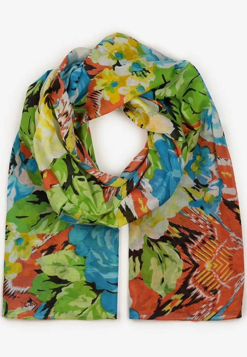 Zielono-Pomarańczowy Bawełniany Szalik Apaszka z Modnym Wzorem Xorria