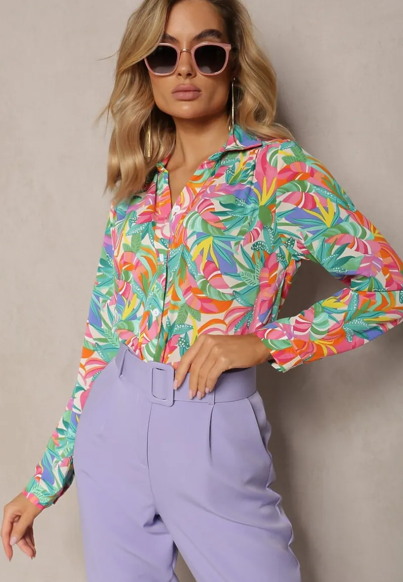Koszula Ationama jest ozdobiona florystycznym, abstrakcyjnym wzorem. Dzięki niej stworzysz wiele ciekawych stylówek.