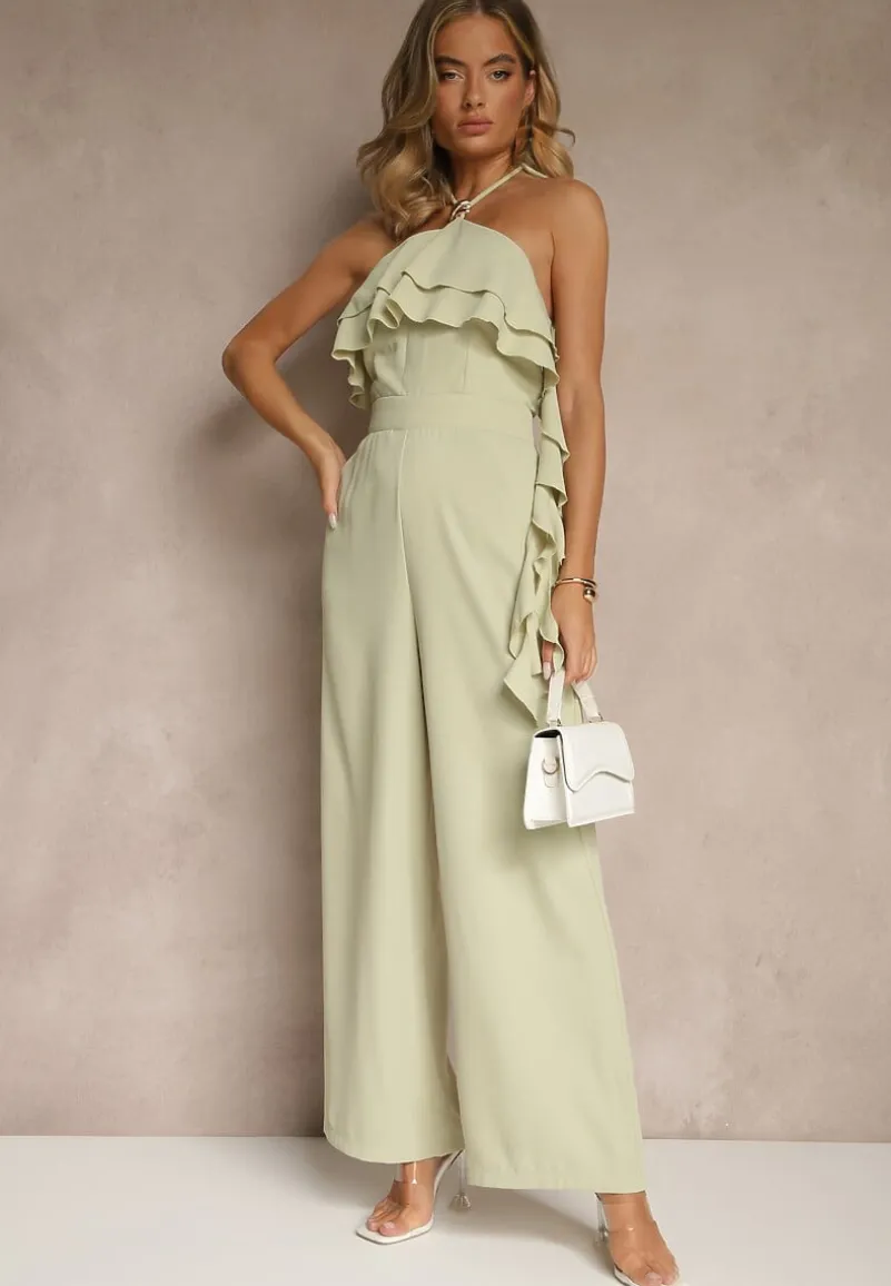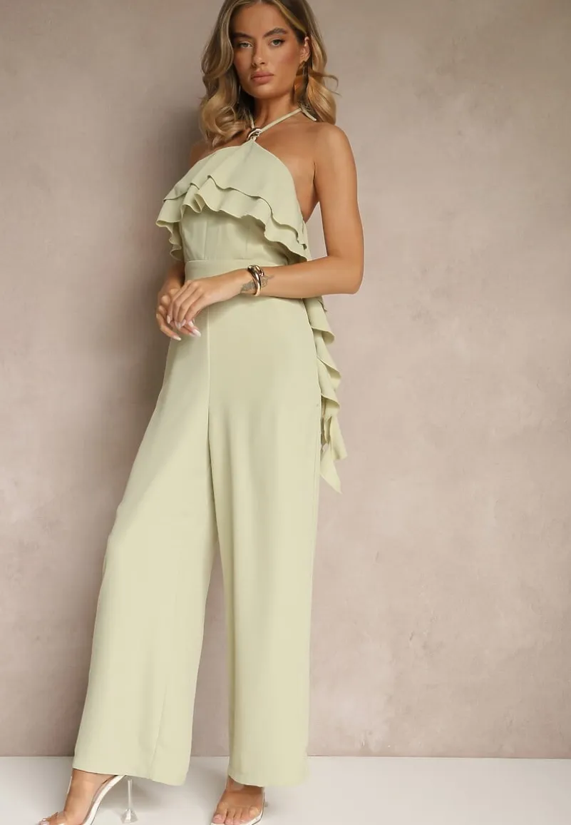 Zielony Asymetryczny Kombinezon Ozdobiony Metaliczną Aplikacją Tilfina
