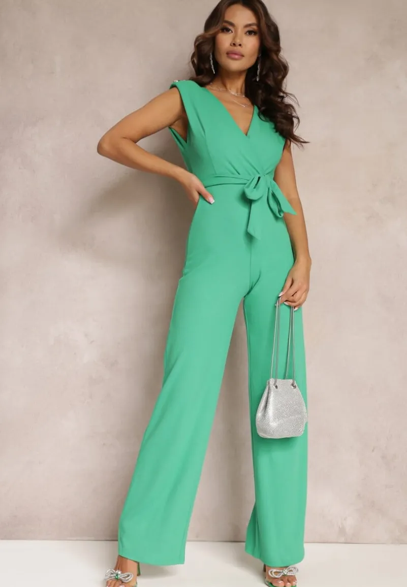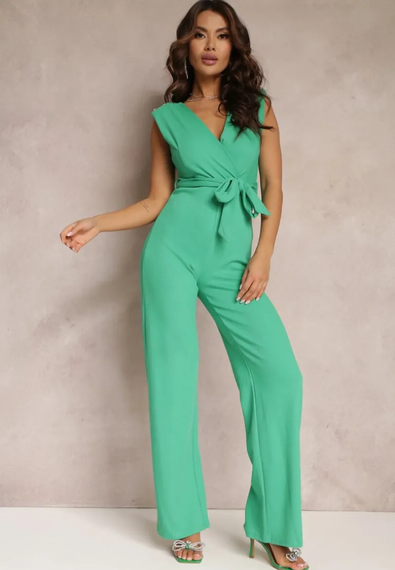 Zielony Długi Kombinezon Wiązany w Pasie z Guzikami Na Ramionach Amile