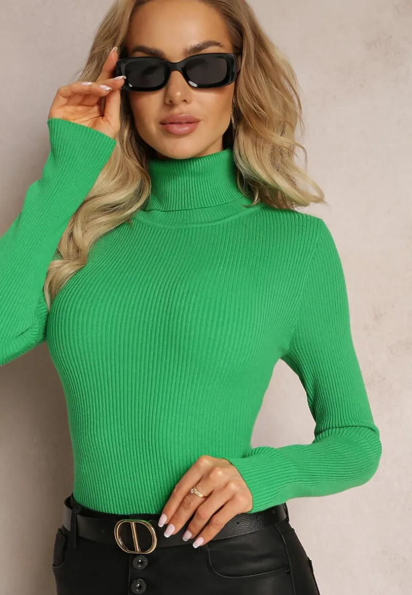 Sweter Ebonee z golfem o jednolitym kolorze. W składzie wiskoza.