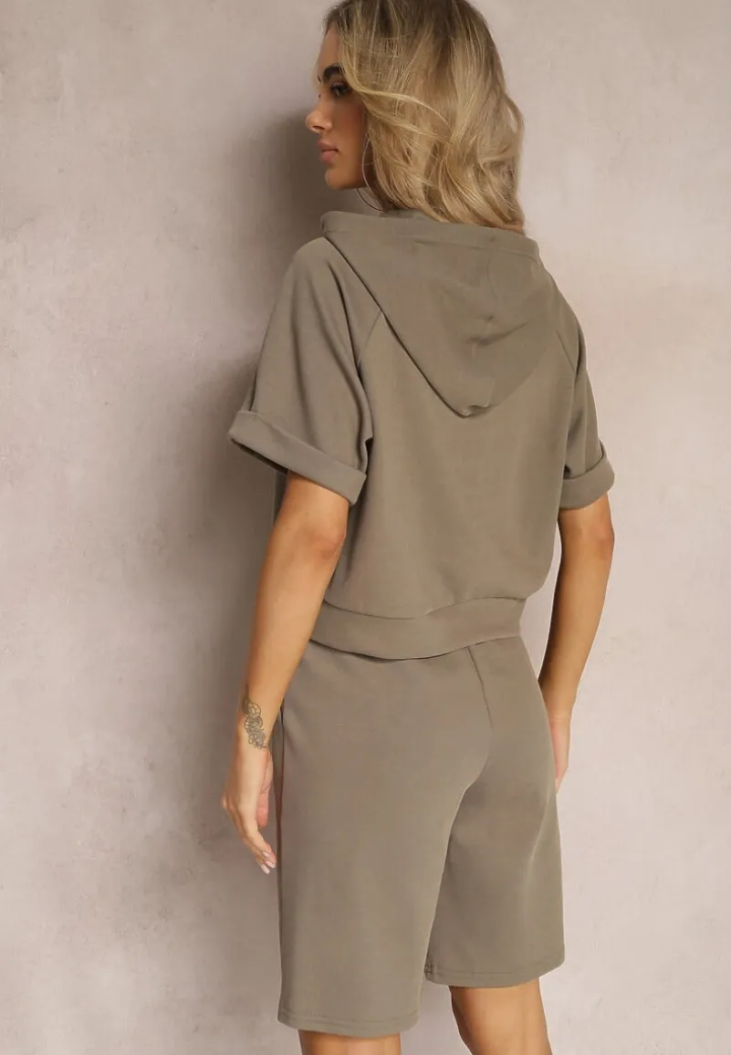 Komplet Dresowy Choana z luźnymi szortami i bluzą z kapturem z krótkimi rękawami.