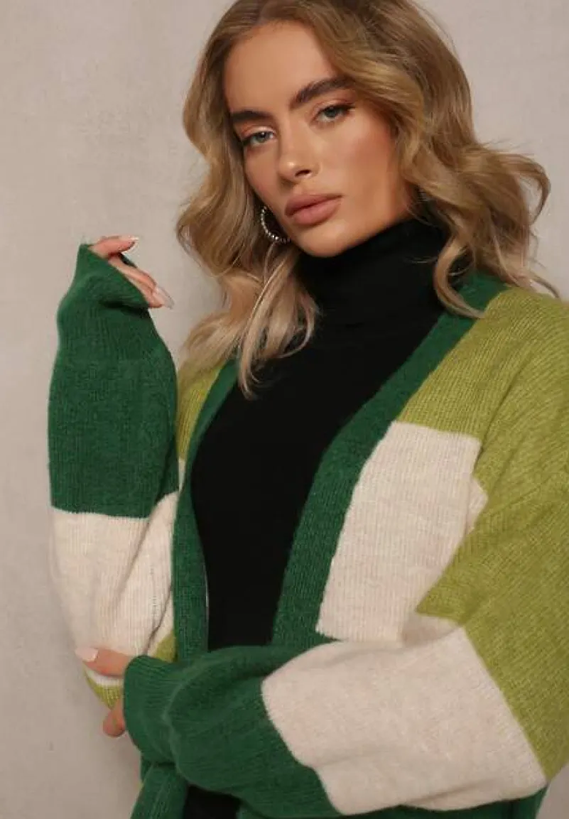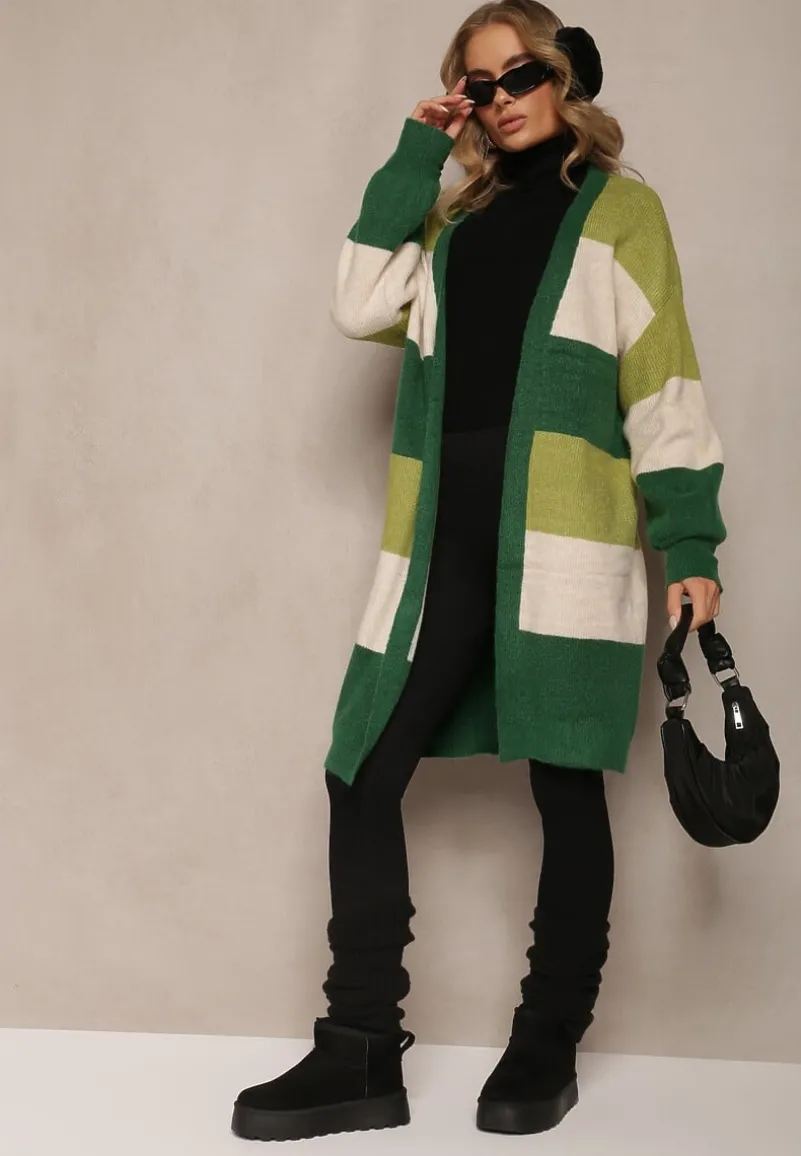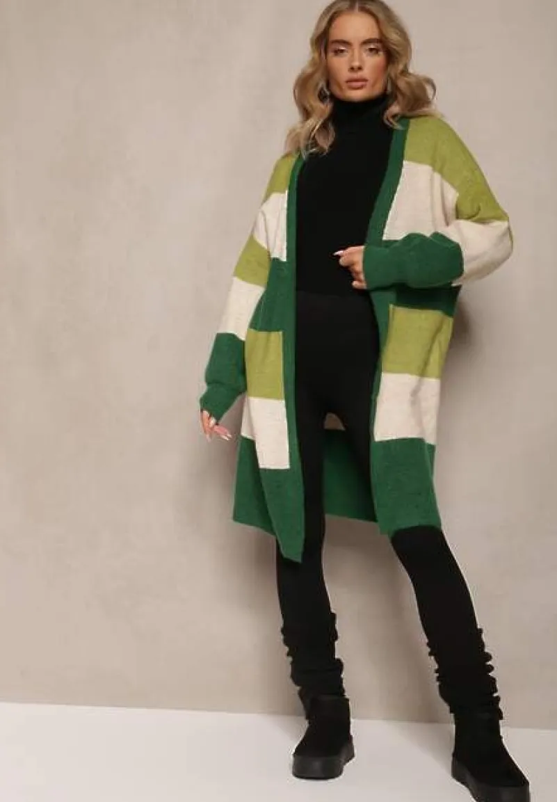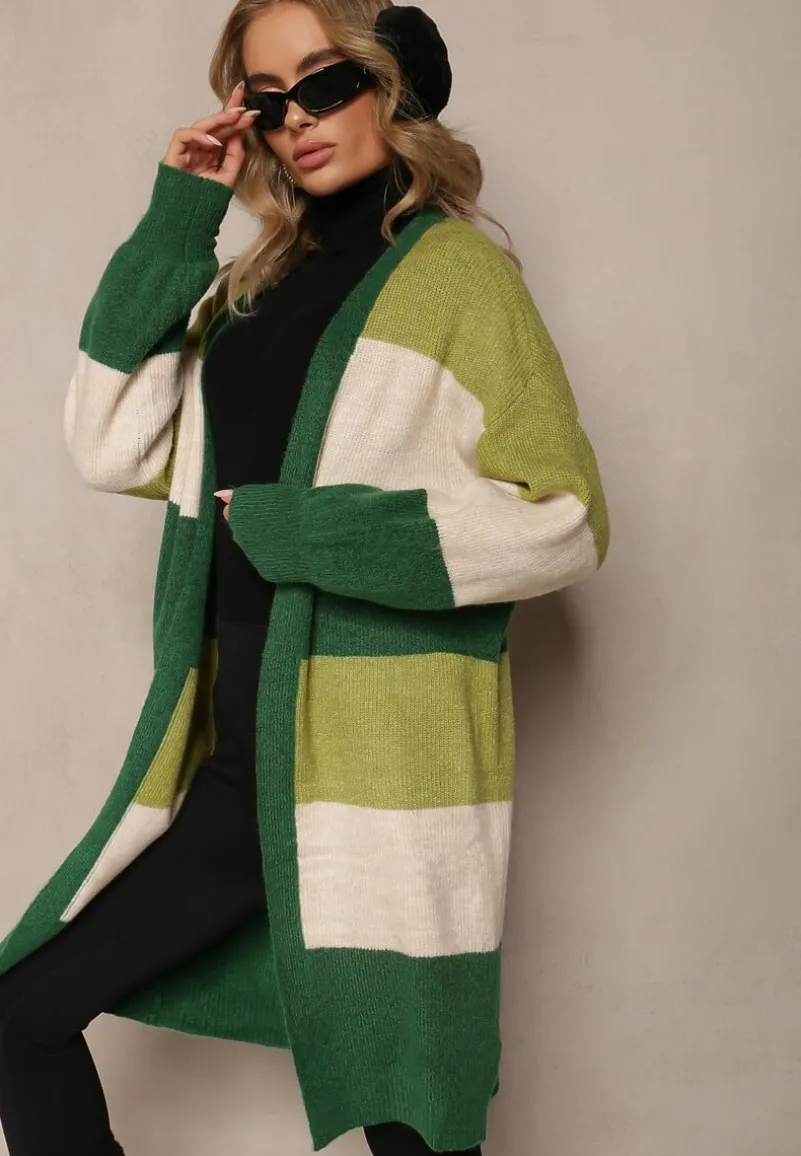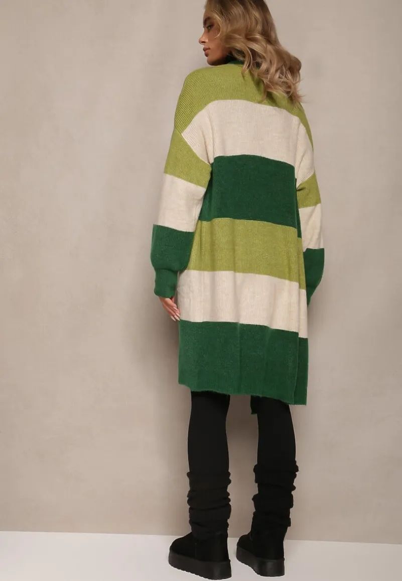 Kardigan Blikoze o niezapinanym, luźnym fasonie. Wykonany z dzianiny w paski. Długie rękawy wykończone elastycznym ściągaczem.