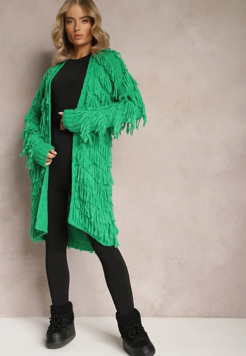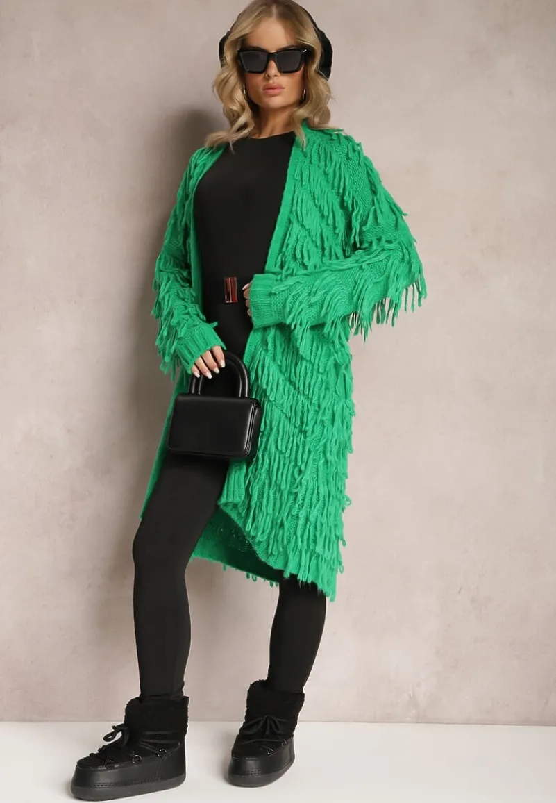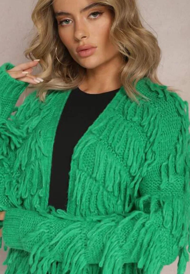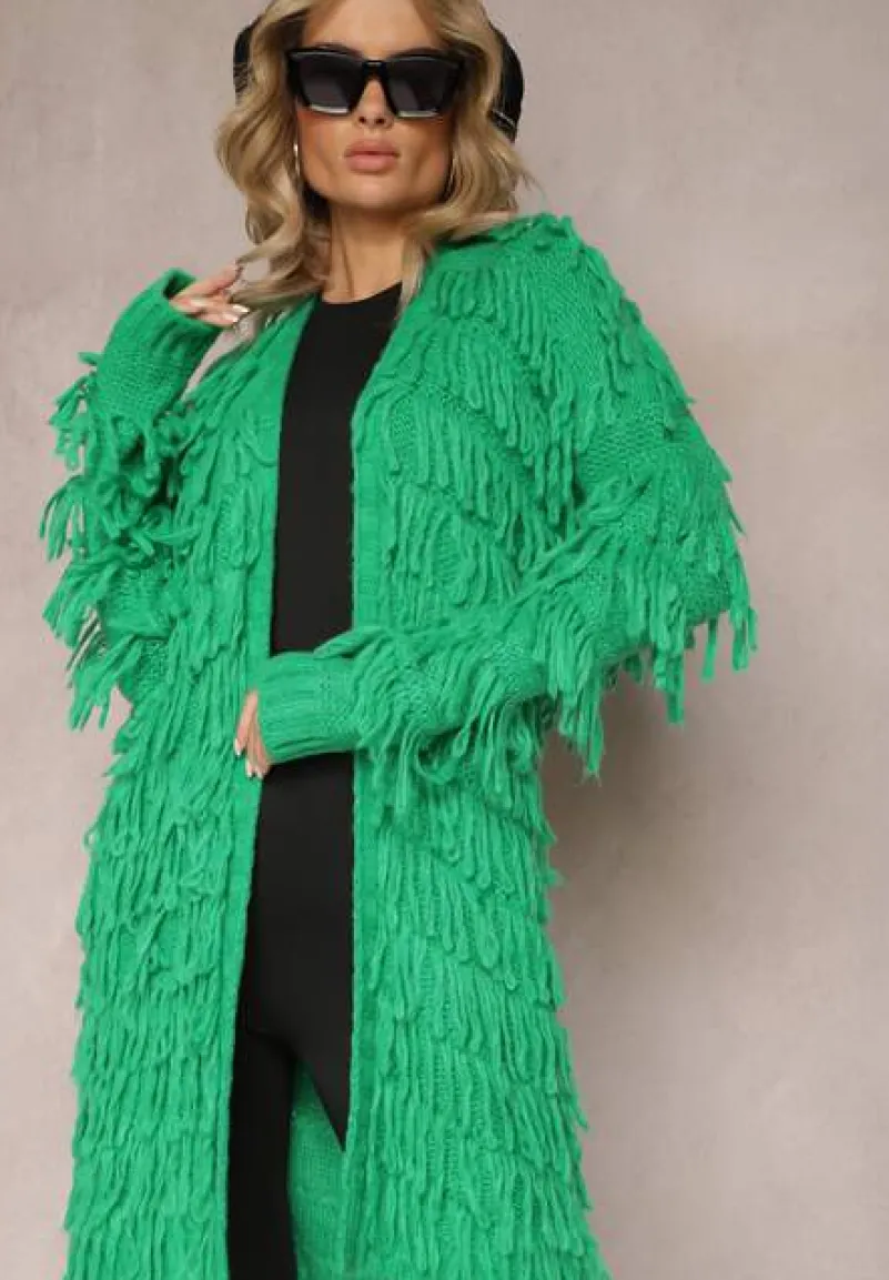 Kardigan Massawa zachwyca stylowym designem z ozdobnymi frędzlami na całej długości. Model o luźnym, niezapinanym fasonie.