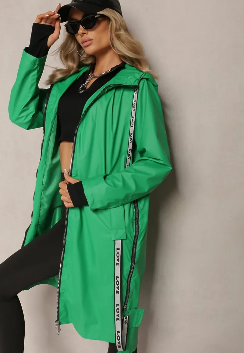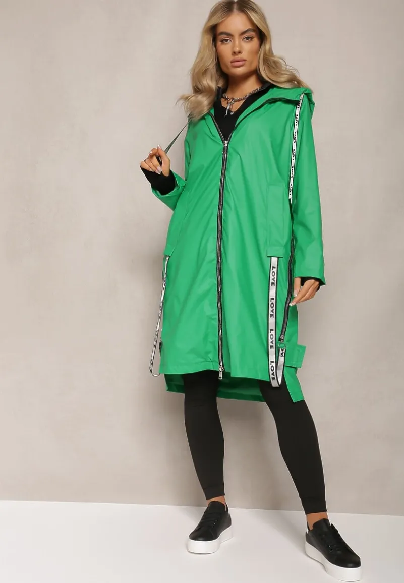 Kurtka Penela długa, sięgająca za kolano i lekko dłuższym tyle. Po bokach suwaki z ozdobną tasiemką. Wyposażona w kaptur ze ściągaczem. Zapinana na zamek błyskawiczny. Wsuwane kieszenie na wysokości bioder. Idealna na sezon przejściowy!