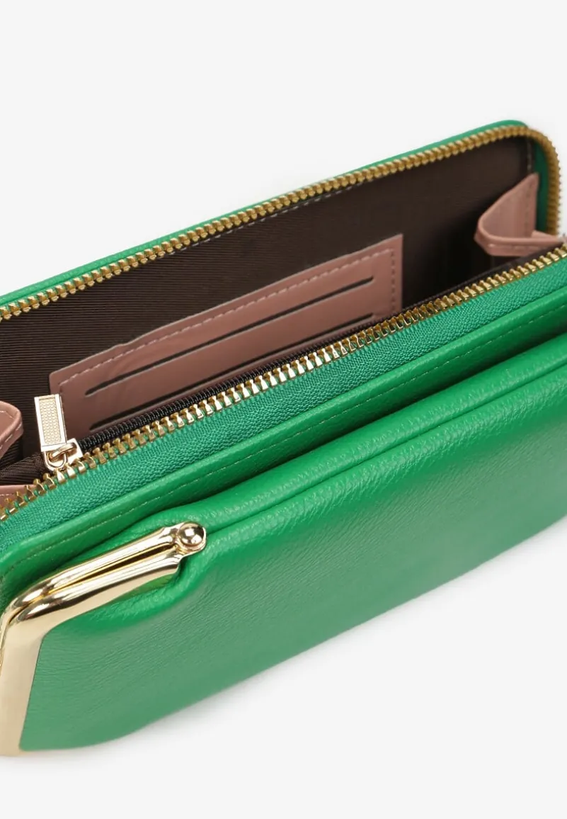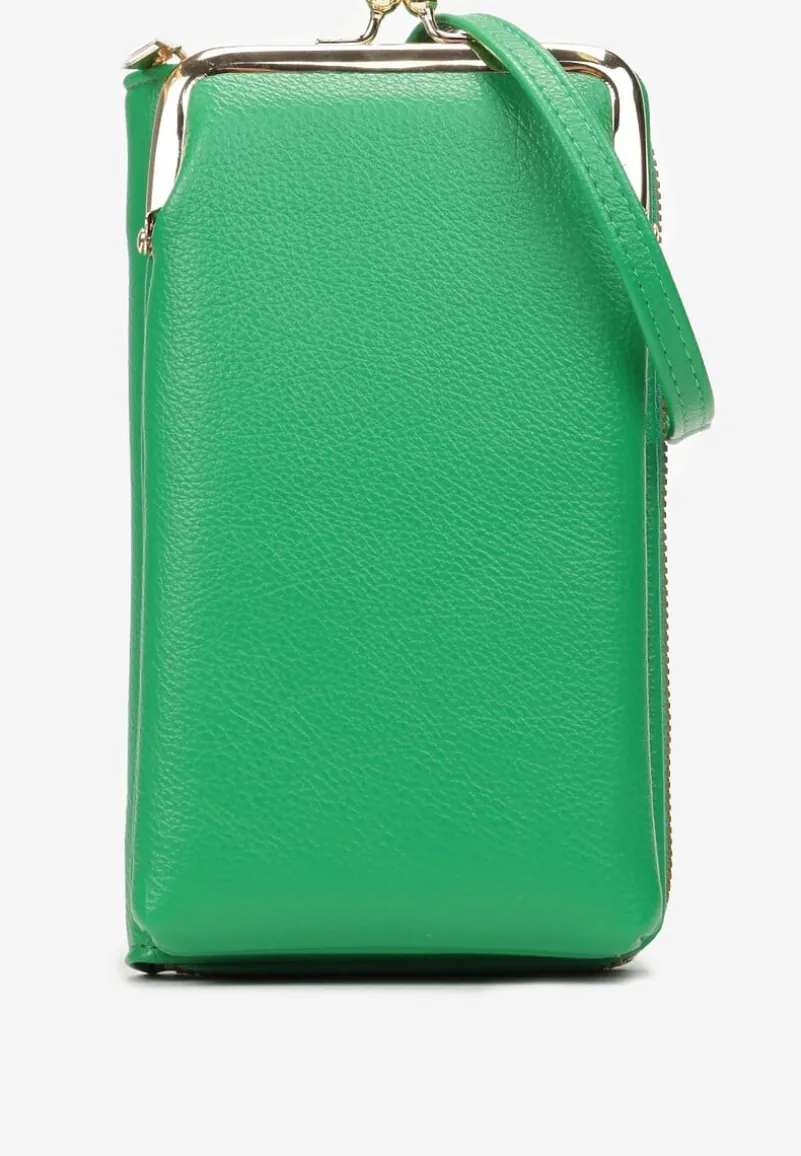 Portfel Vayce z ekoskóry. W kształcie małej torebki. Dodany cienki pasek oraz portmonetka na górze.
