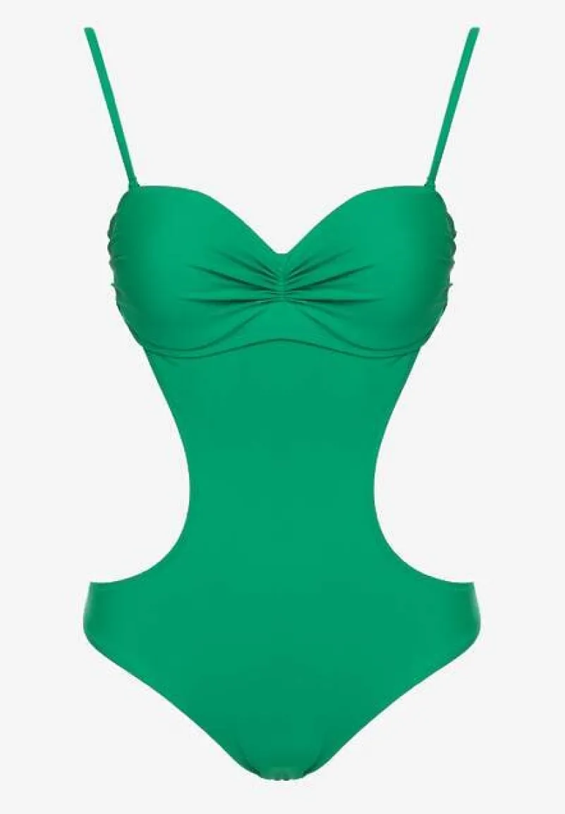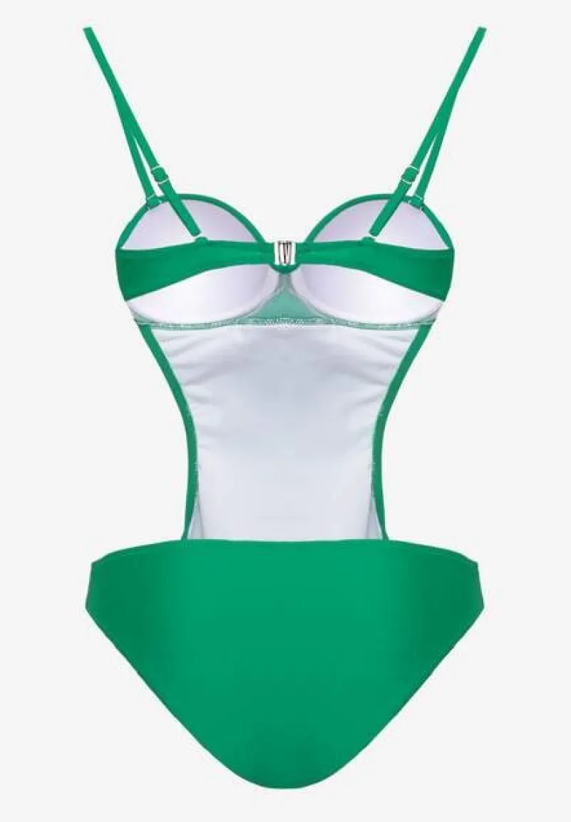 Zielony Strój Kąpielowy Jednoczęściowy z Wycięciami w Talii i na Plecach Tovantia