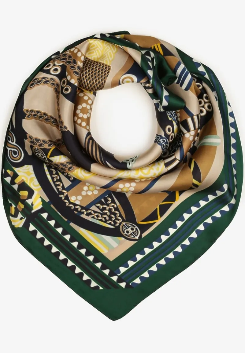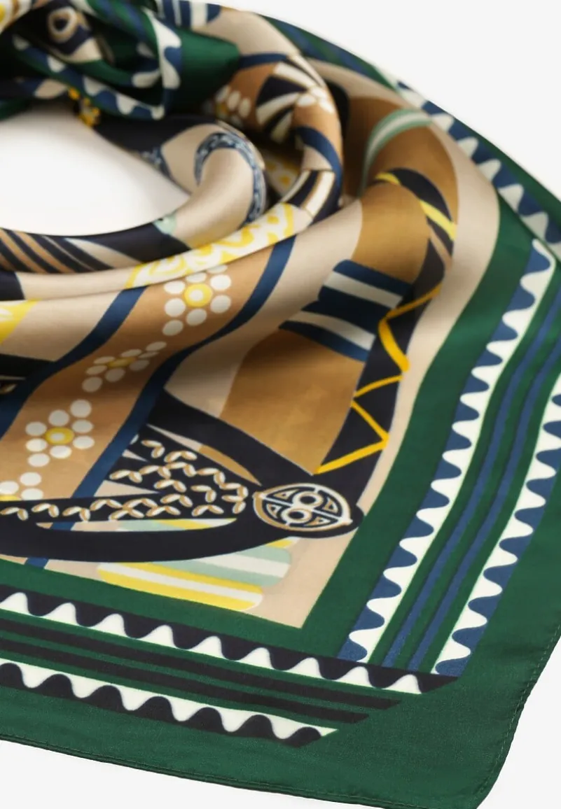 Zielony Szalik Typu Apaszka Zdobiony Ornamentalnym Wzorem Labirise