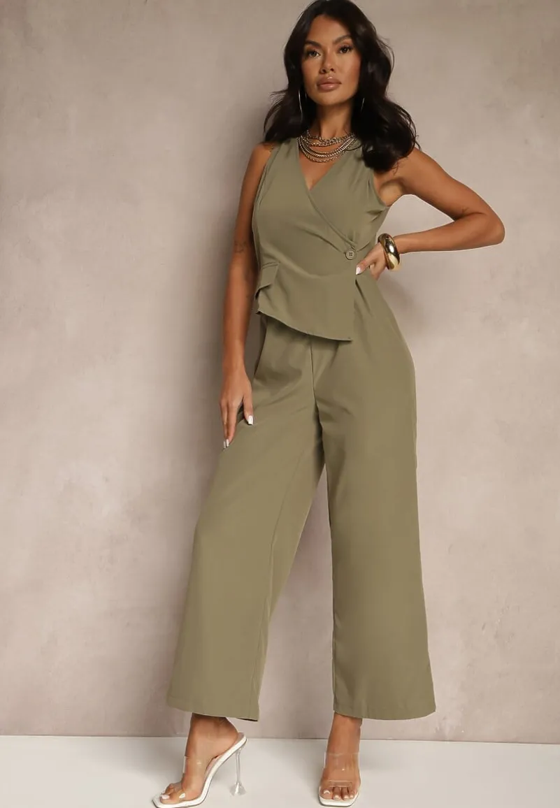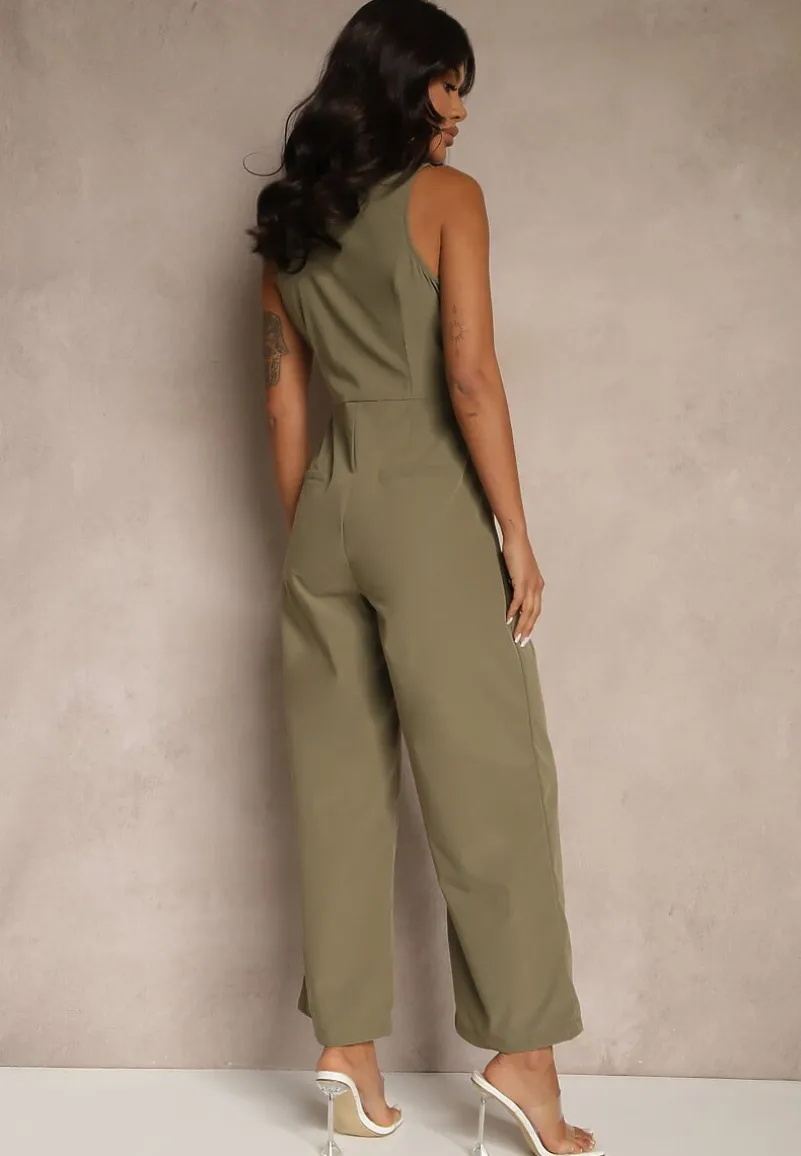 Zielony Taliowany Kombinezon Elegancki z Dekoltem V Nevianis