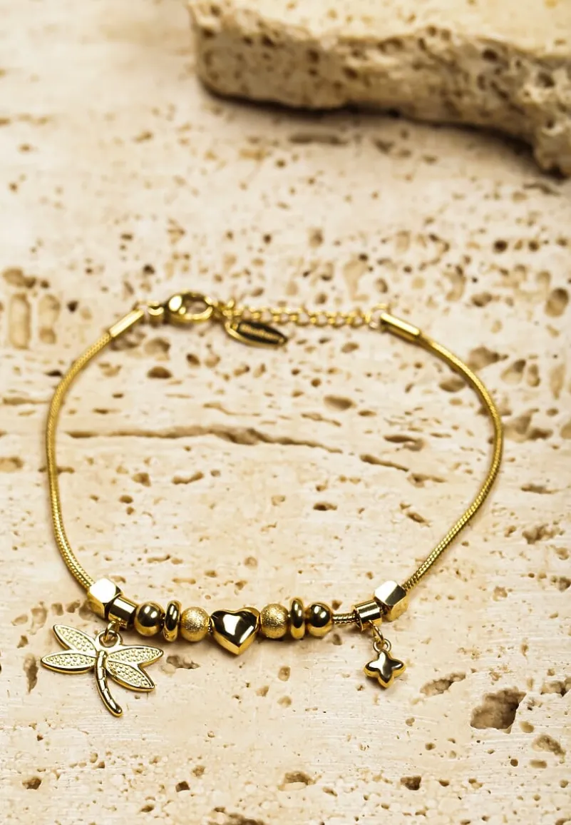 Bransoletka z Zawieszkami i Ozdobną Ważką Turea to idealny dodatek dla każdej kobiety pragnącej podkreślić swój styl. Zawieszki w formie serca i uroczej ważki dodają jej wyjątkowego charakteru, idealnie wpisując się w najnowsze trendy. Wykonana ze stali nierdzewnej, zapinana na karabińczyk.