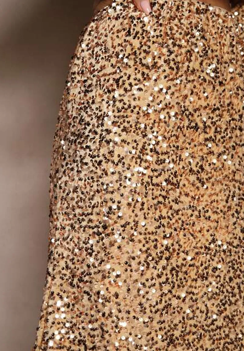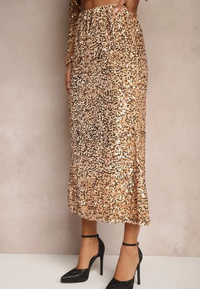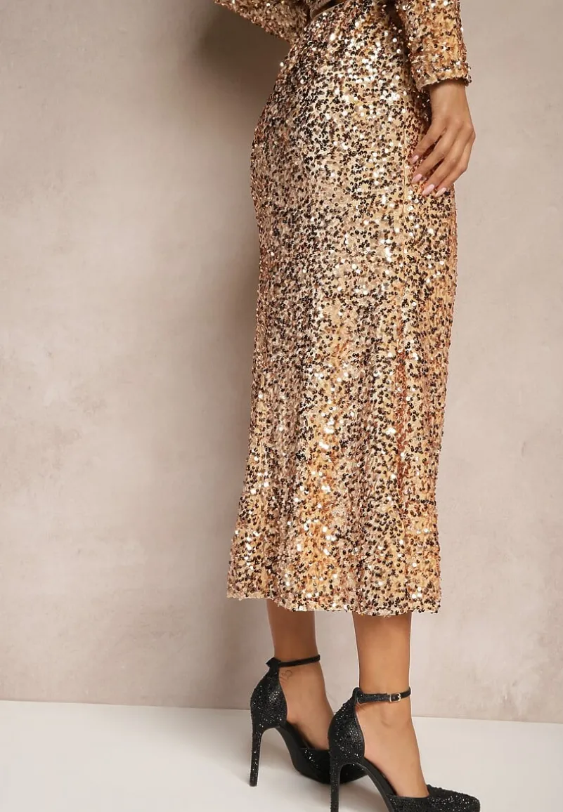 Cekinowa Spódnica Berizola to wyjątkowy element, który przeniesie Twój look w świat koktajlowego blasku. Fason z gumką w pasie gwarantuje dopasowanie. Spódnica świetnie sprawdzi się na specjalne okazje, nadając każdej stylizacji wyrafinowanego charakteru. Zdecyduj się na wieczorową elegancję, dopasowując ją do gładkiego topu i szpilek. Dzięki temu modelowi z łatwością podkreślisz swoją indywidualność i kobiecość.