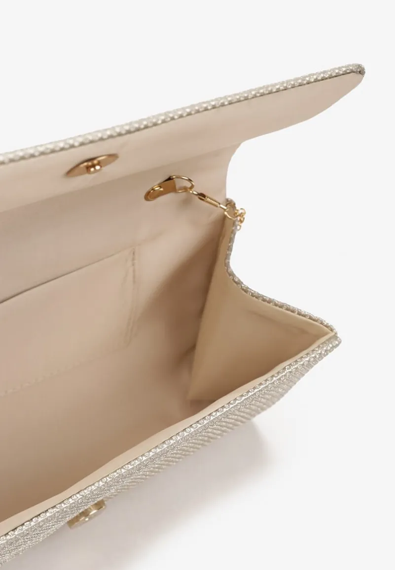 Torebka Inesas o fasonie kopertówki. Jest udekorowana drobnym brokatem. Przewieszona na łańcuszku.