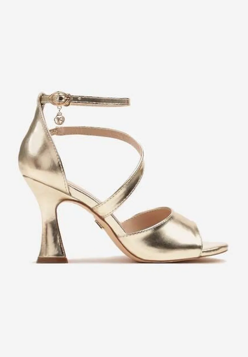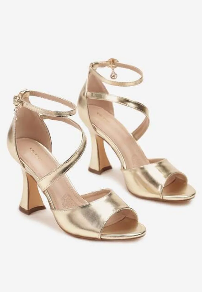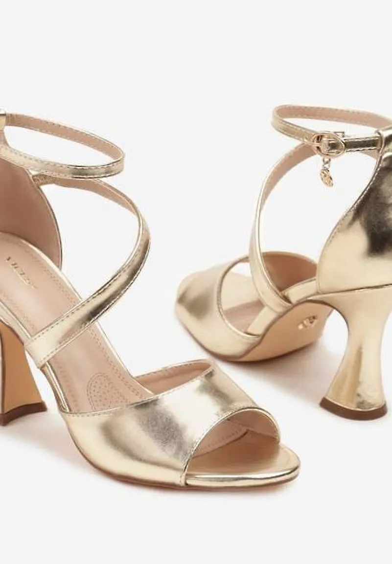 Złote Asymetryczne Sandały Vices na Obcasie Typu Klepsydra Sarolise