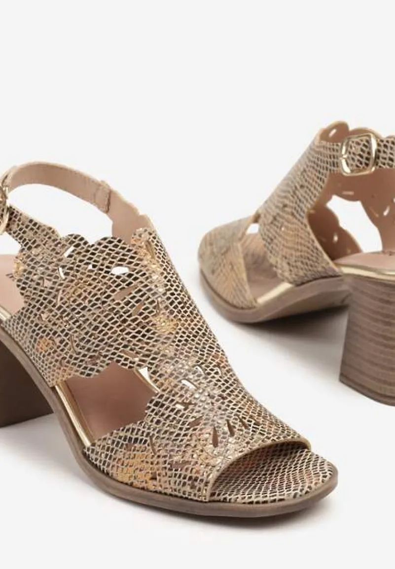Złote Ażurowe Sandały na Słupku ze Skórzaną Wkładką Lianisse